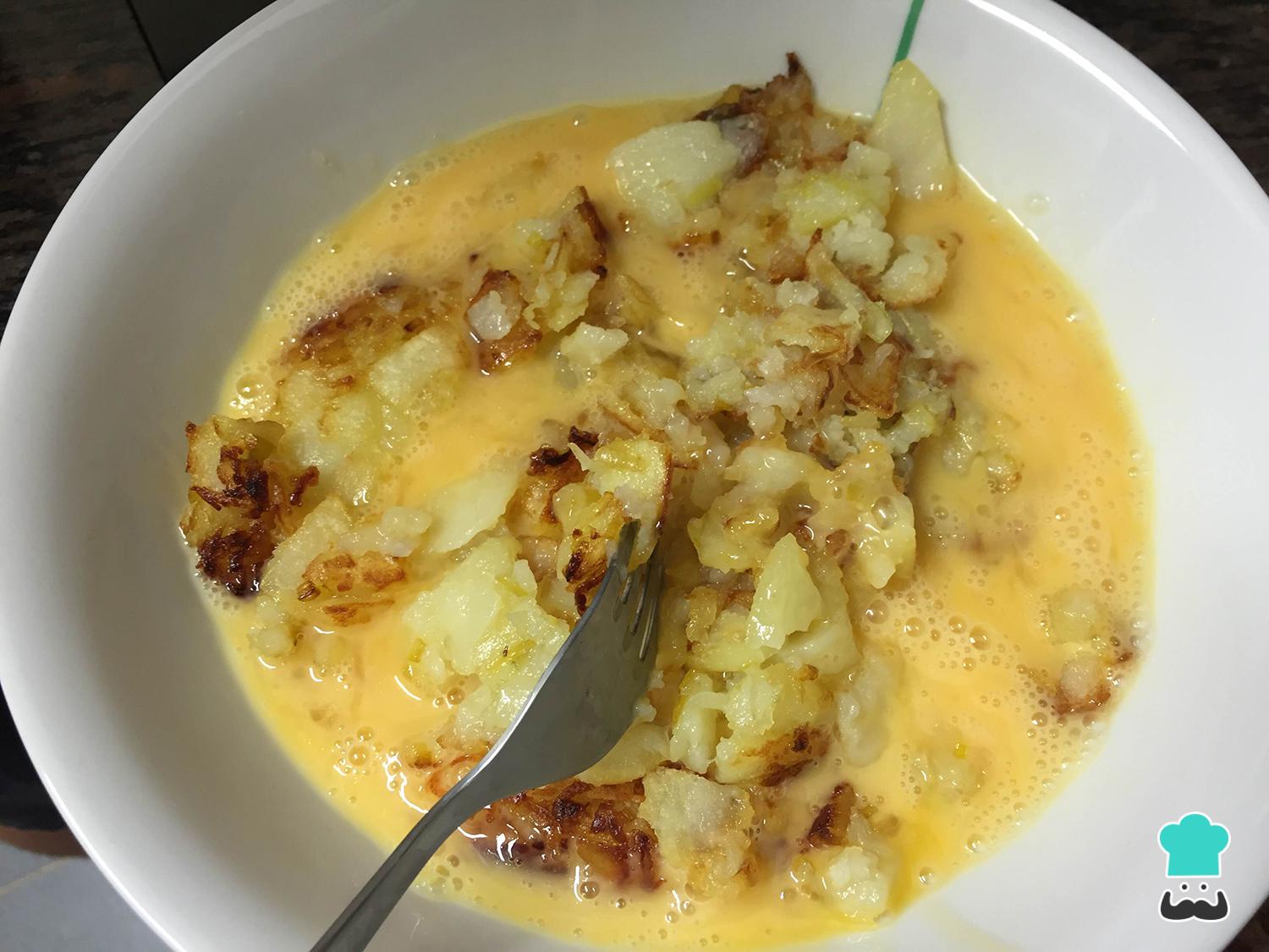 Truco: Si has añadido más patatas, incorpora también más huevos.