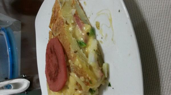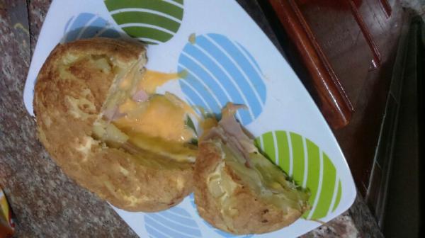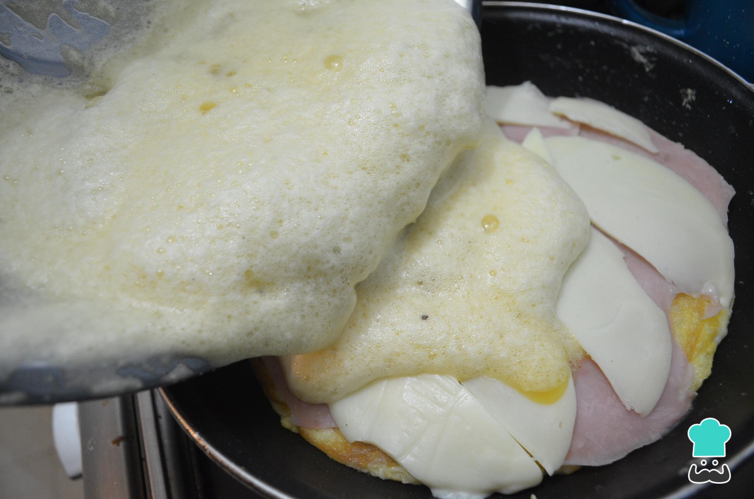 Cubre el jamón y queso con la mezcla restante de huevo.