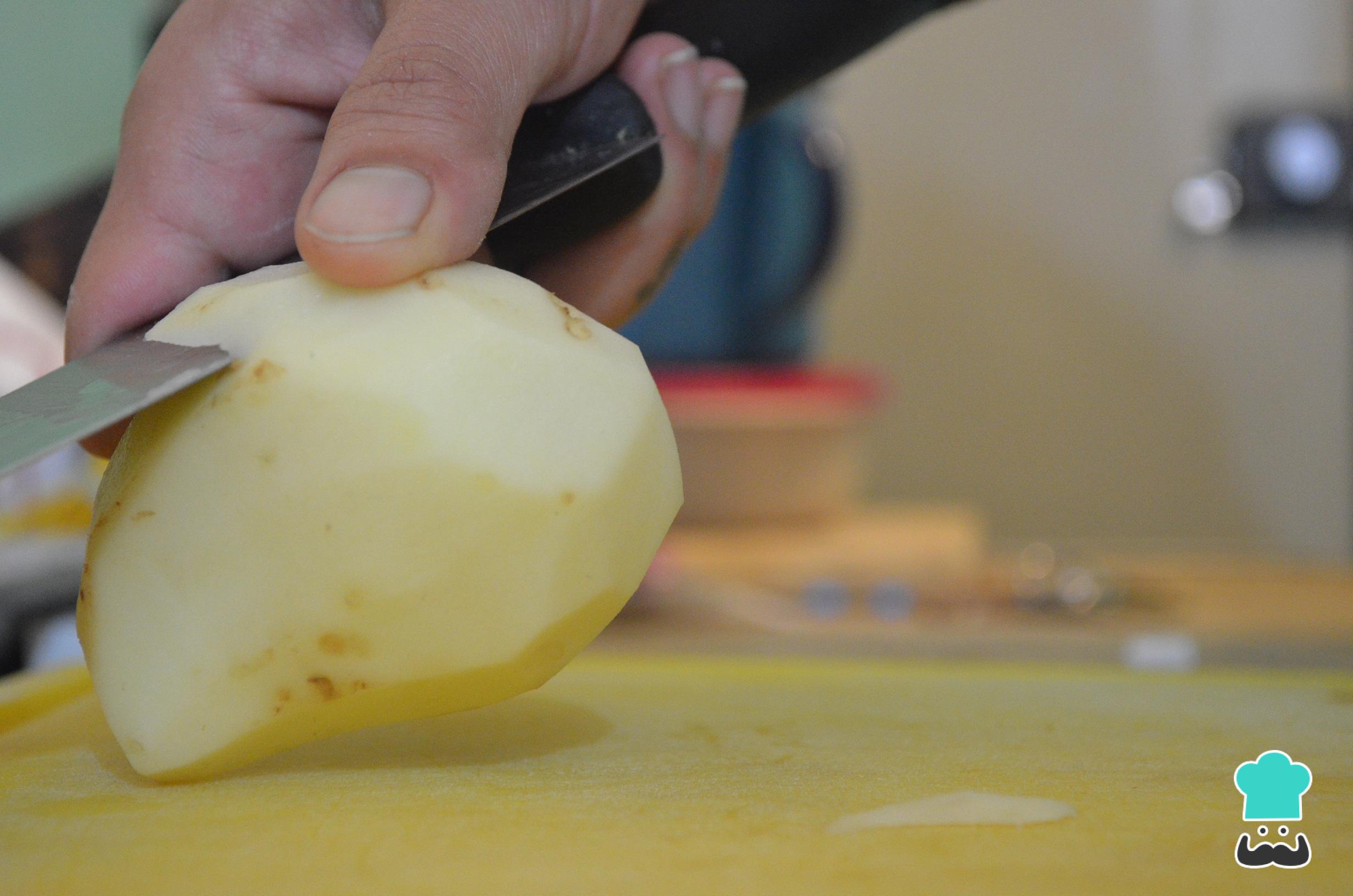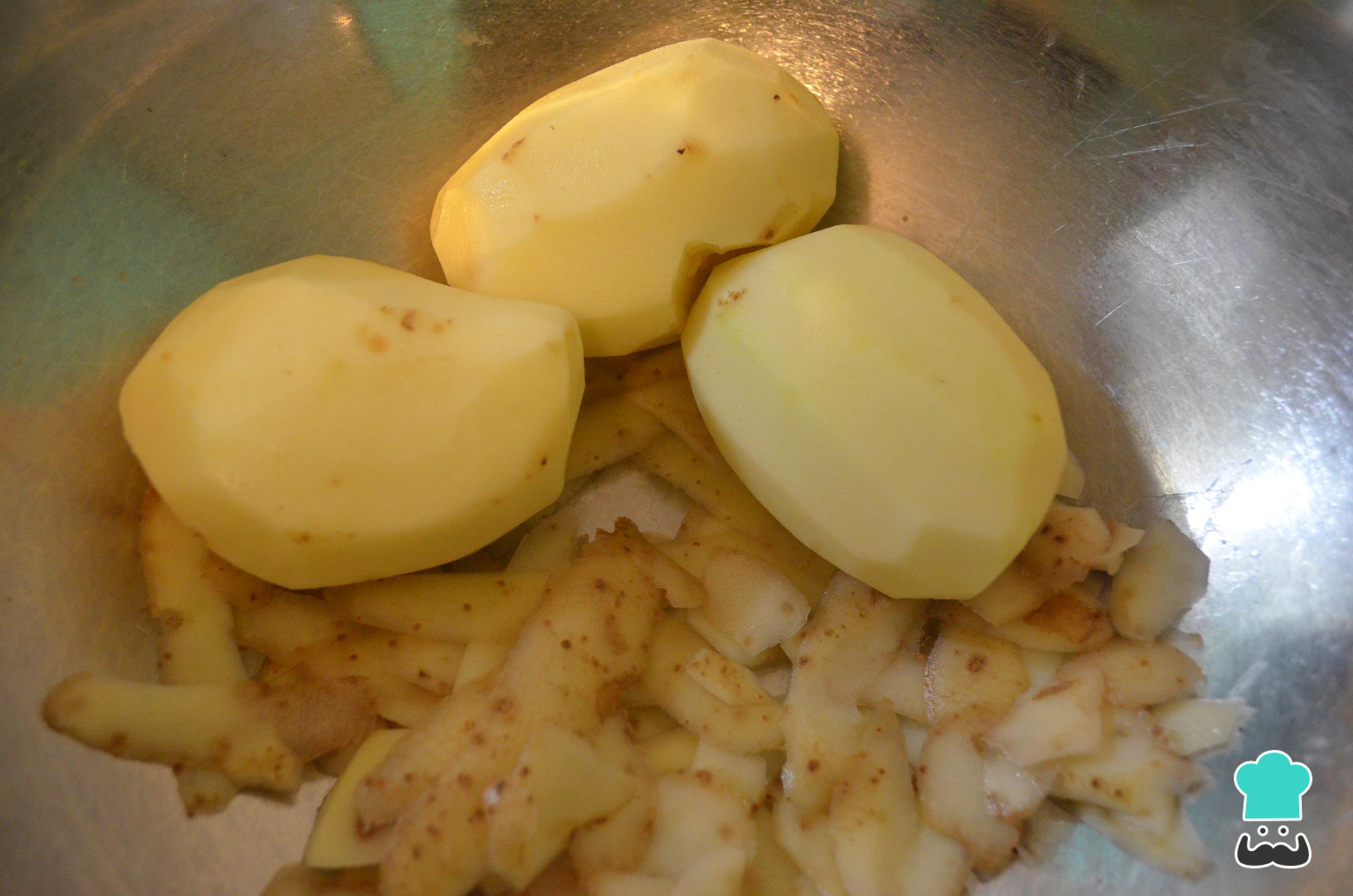 El primer paso para preparar nuestra tortilla rellena será lavar y pelar las papas.