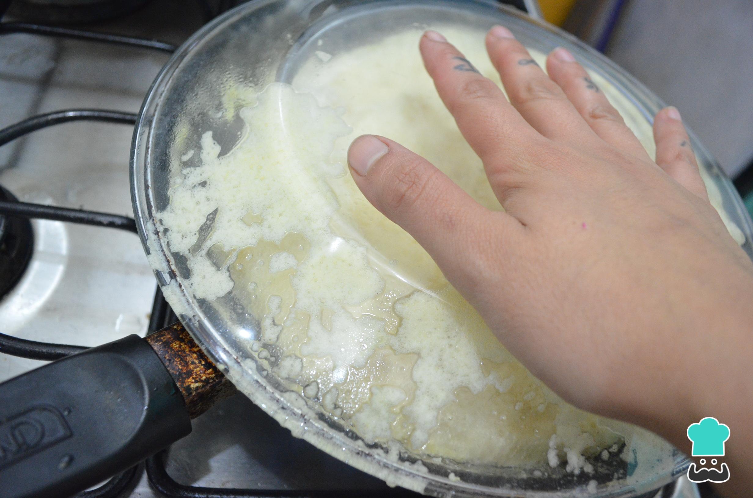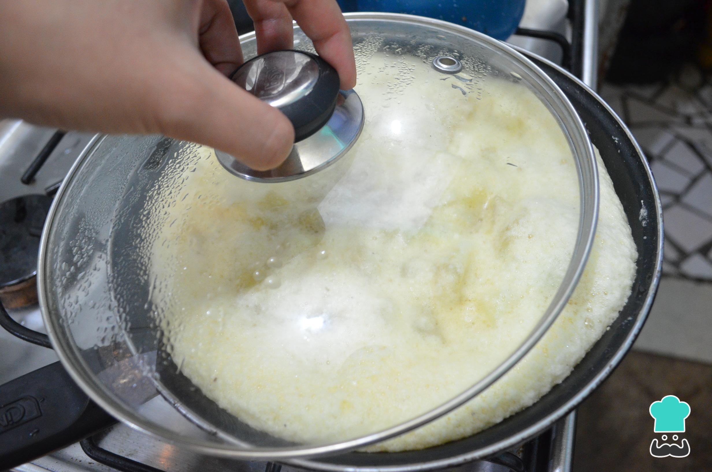 Truco: A lo largo de este tiempo, con la ayuda de una espátula de cocina vamos rodeando la tortilla para evitar que se pegue.
