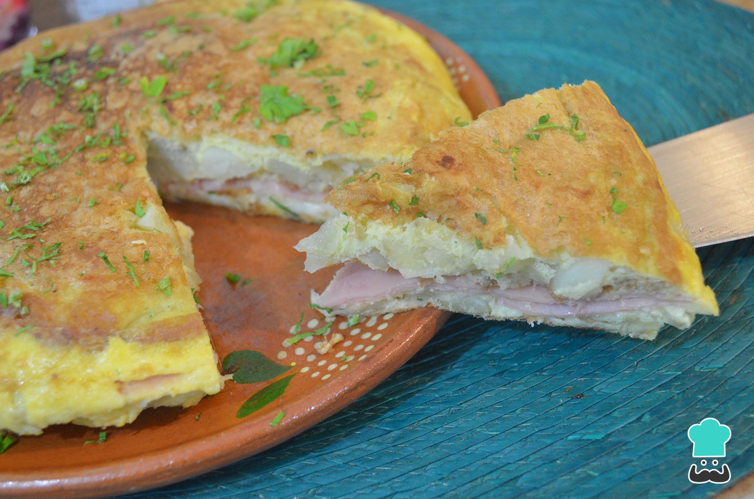 Cómo hacer Tortilla de patatas rellena de jamón y queso: