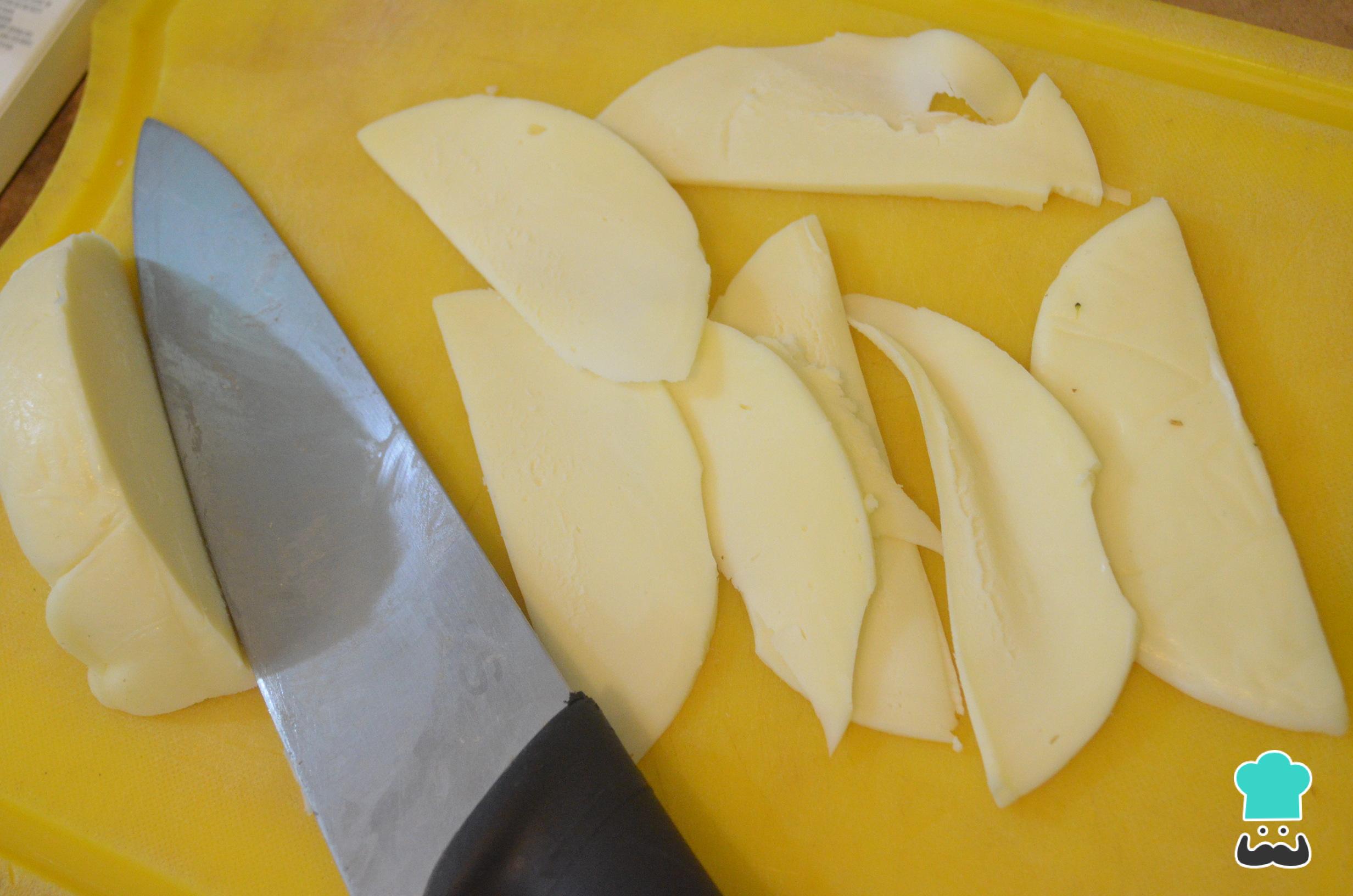 Corta el queso en rebanadas delgadas, y el jamón de ser necesario.