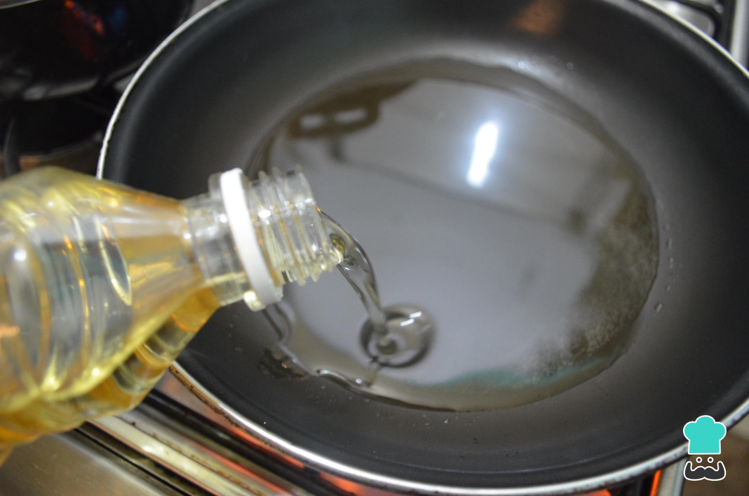 Aparte, vierte el suficiente aceite que cubra el fondo de una sartén mediana.