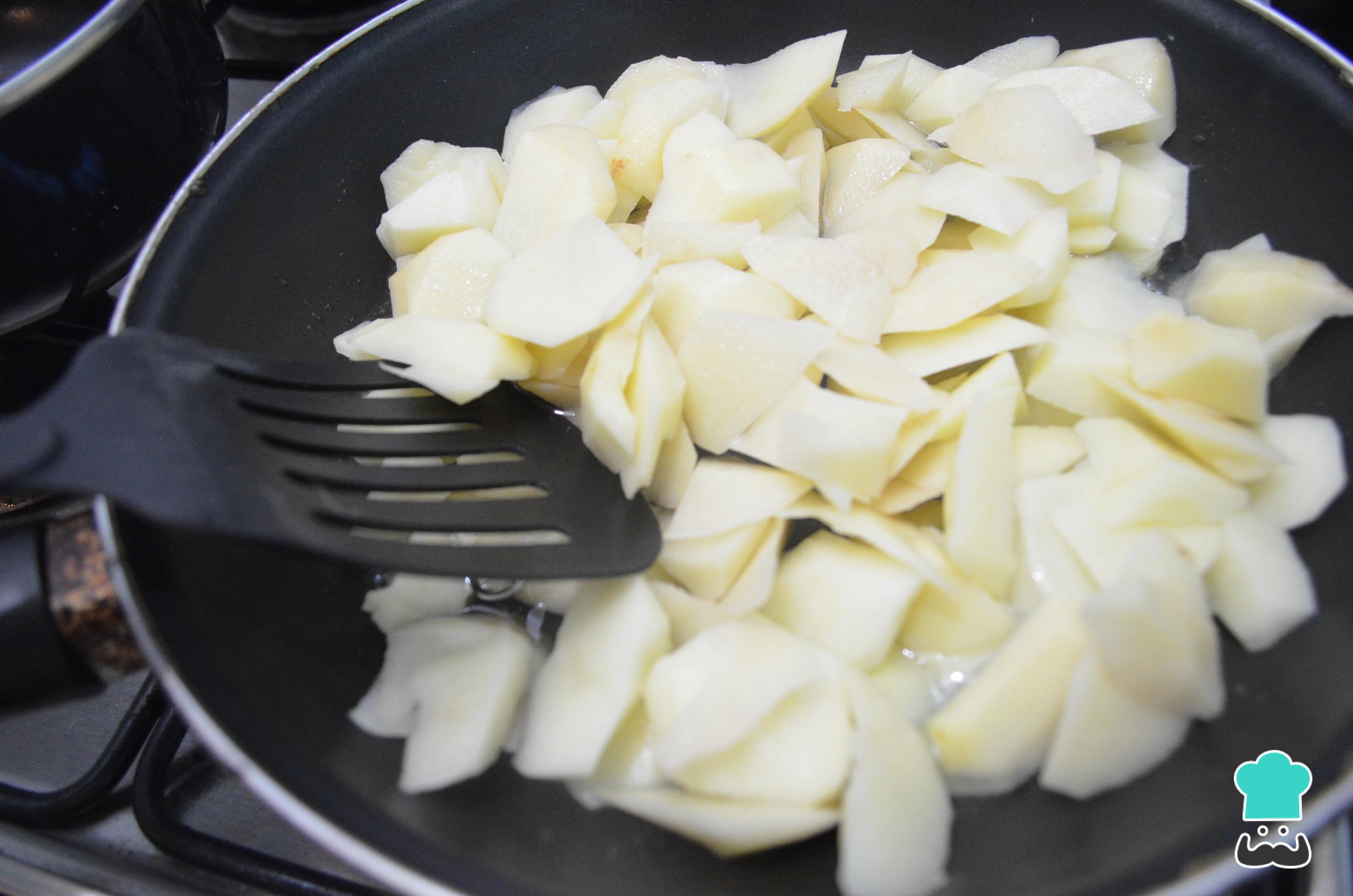 Sofríe las papas a fuego medio-bajo y sin dejar de mover constantemente.