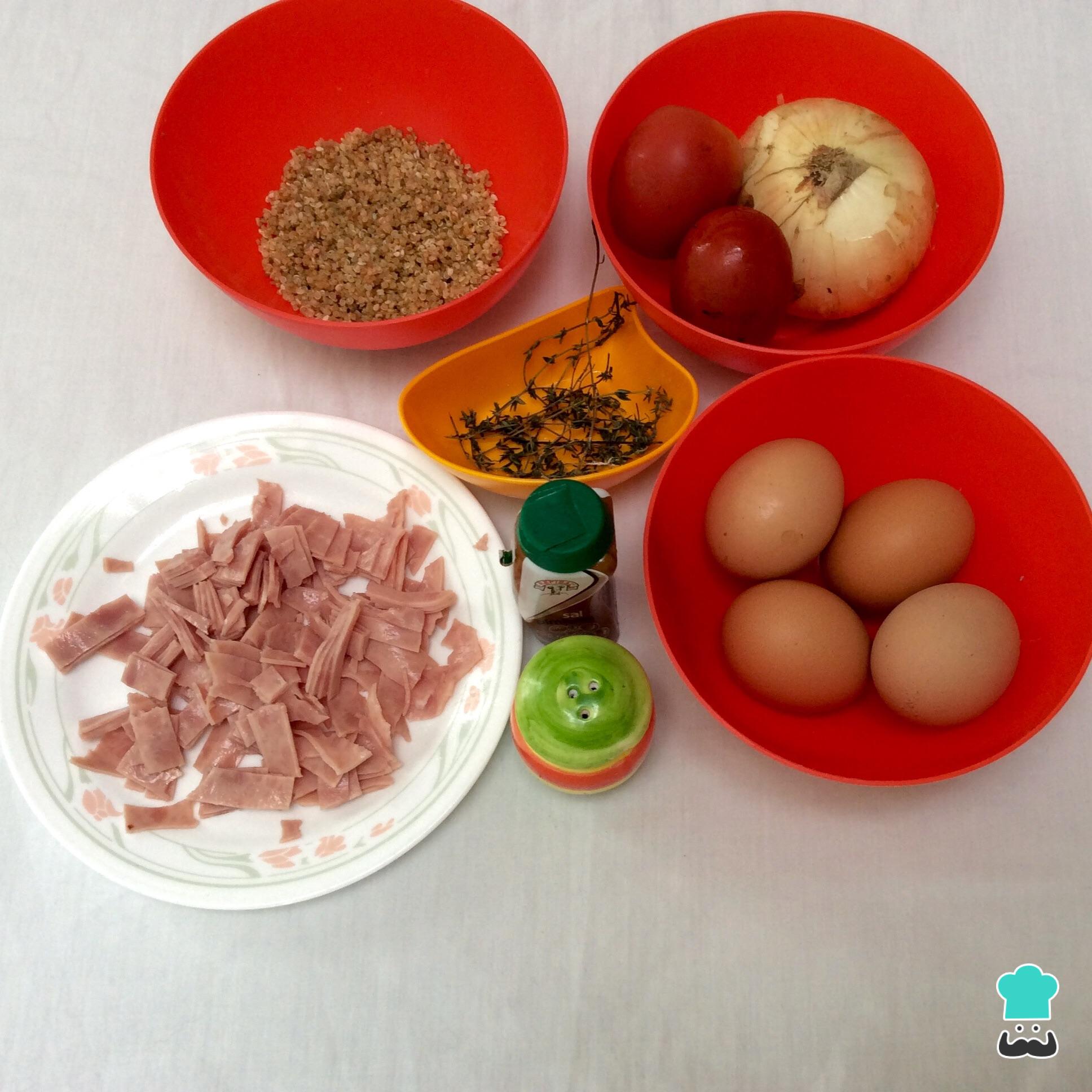 Para esta deliciosa tortilla de quinoa lo primero que debes hacer es alistar todos los ingredientes, estos son para una tortilla mediana.