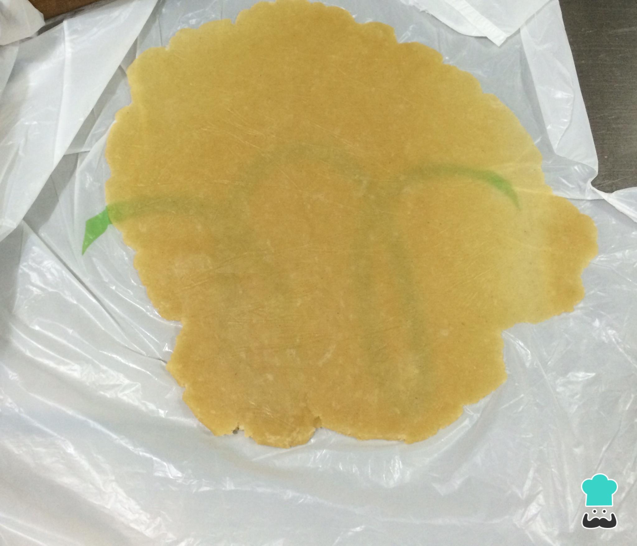 Es momento de estirar la masa. Para evitar que se pegue, usar una bolsa plástica, la fajita debe ser lo más delgada posible pero trabajándola con cuidado para evitar que se rompa.