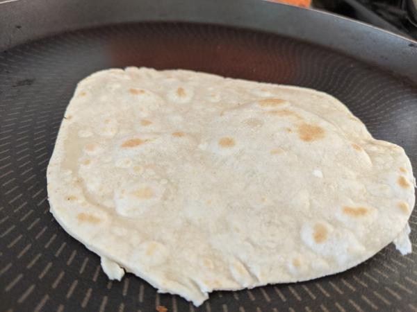 Una vez formadas todas las tortillas de harina a mano, las llevamos a la plancha caliente y dejamos que se cocinen durante 10 segundos por cada lado.