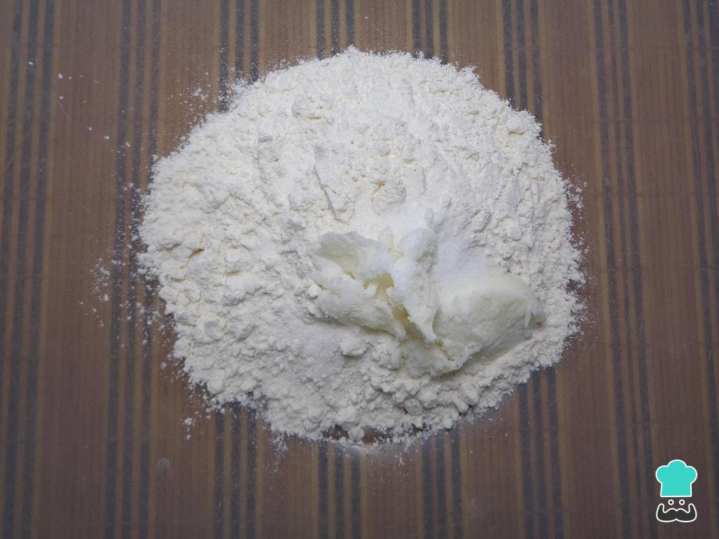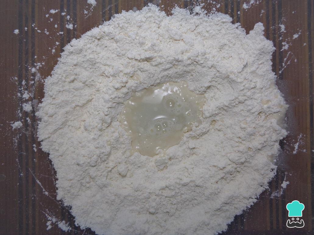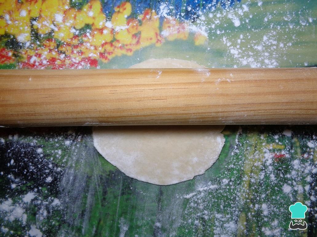 Una vez listas las bolitas, tomamos cada una de ellas y con ayuda de un rodillo las aplastamos sobre una superficie plana, la cual debe estar un poco enharinada para que no se pegue la masa.