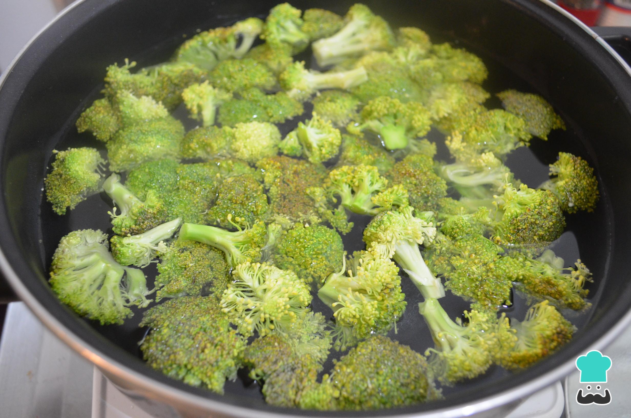 En una cacerola con una cucharada de sal y suficiente agua fría que lo cubra, cocemos el brócoli a fuego medio hasta que rompa hervor.