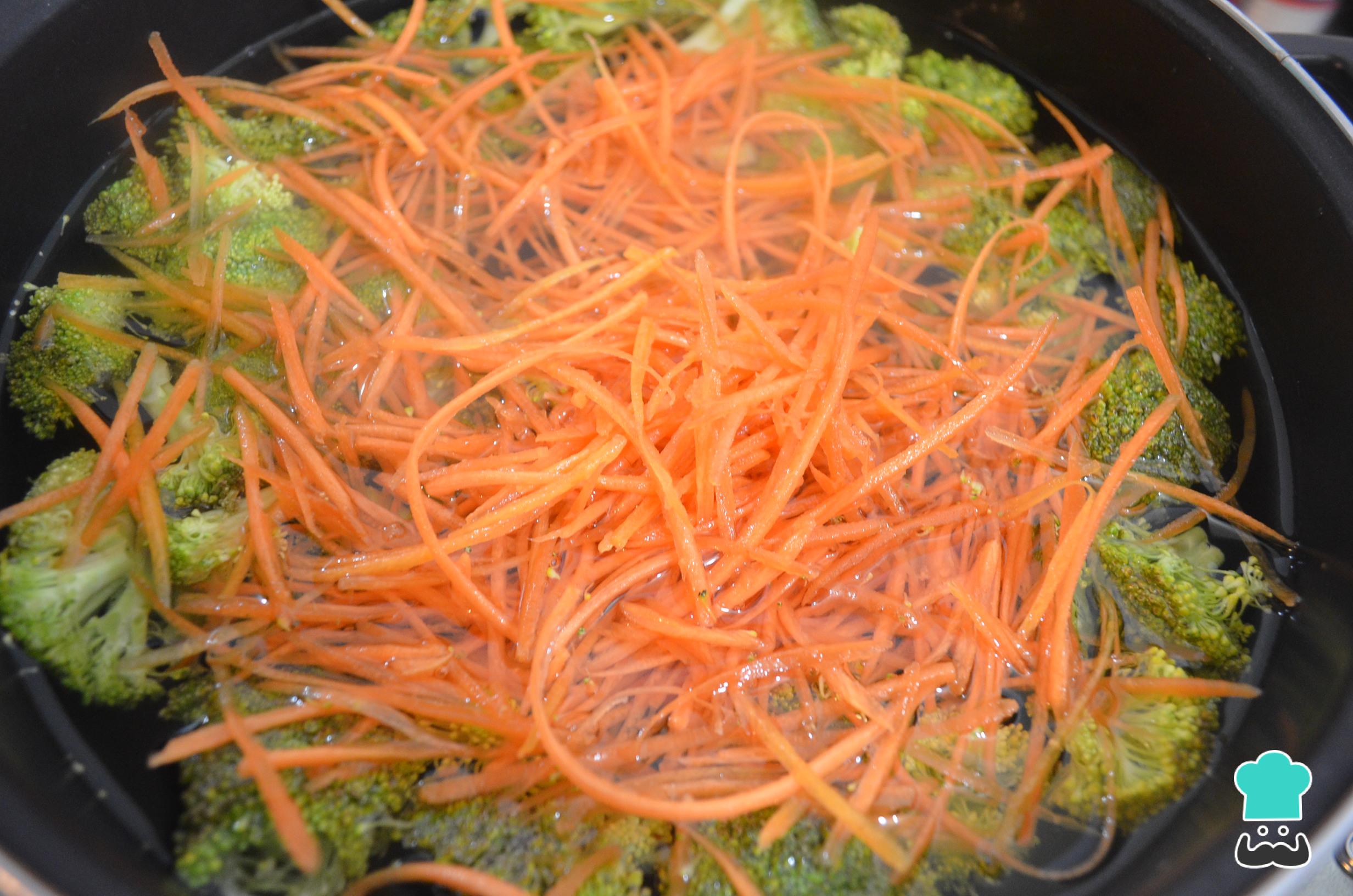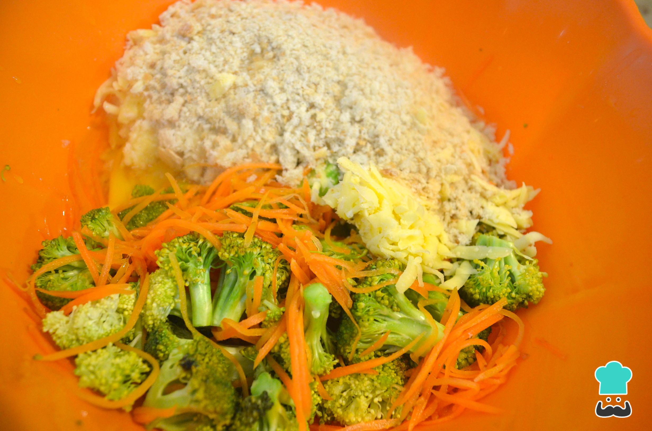 En un bol, añadimos el brócoli y la zanahoria junto con los huevos, el queso rallado y el pan molido. Mezclamos y sazonamos con de sal y pimienta al gusto.