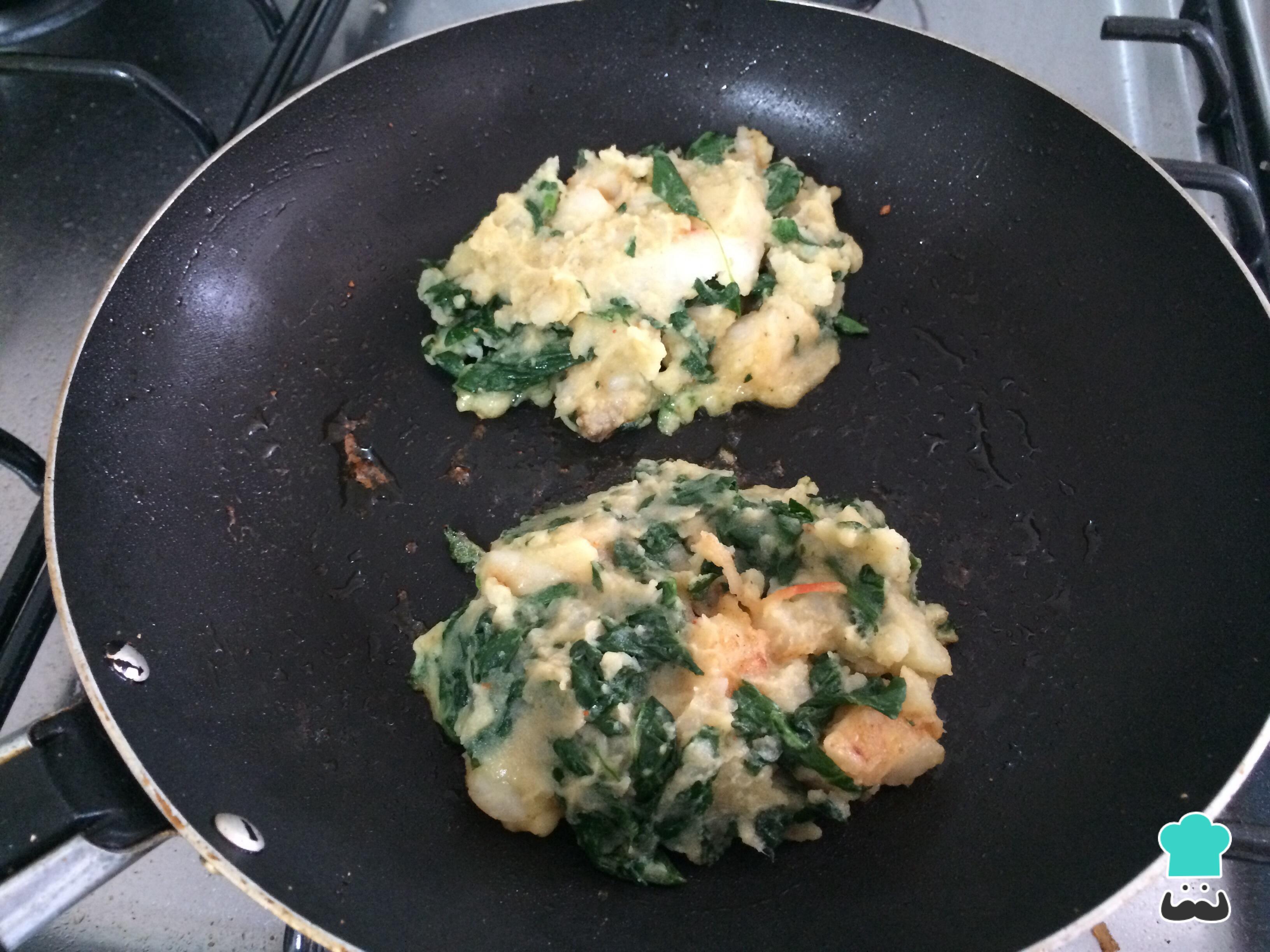 Finalmente en una sartén con aceite, disponer un poco de la mezcla en forma de tortitas y cocinar por ambos lados durante 3 minutos a fuego bajo, hasta que estén doradas.