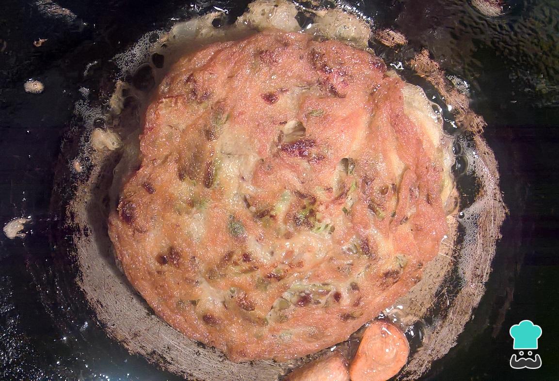 Una vez dorado el ajo formaremos la tortitas mexicanas: tomamos una cucharada grande de nuestra mezcla de flor de garambullo y la colocamos en el aceite caliente, dejamos que se dore primero de un lado, después le damos la vuelta y dejamos que se termine de dorar completamente.
