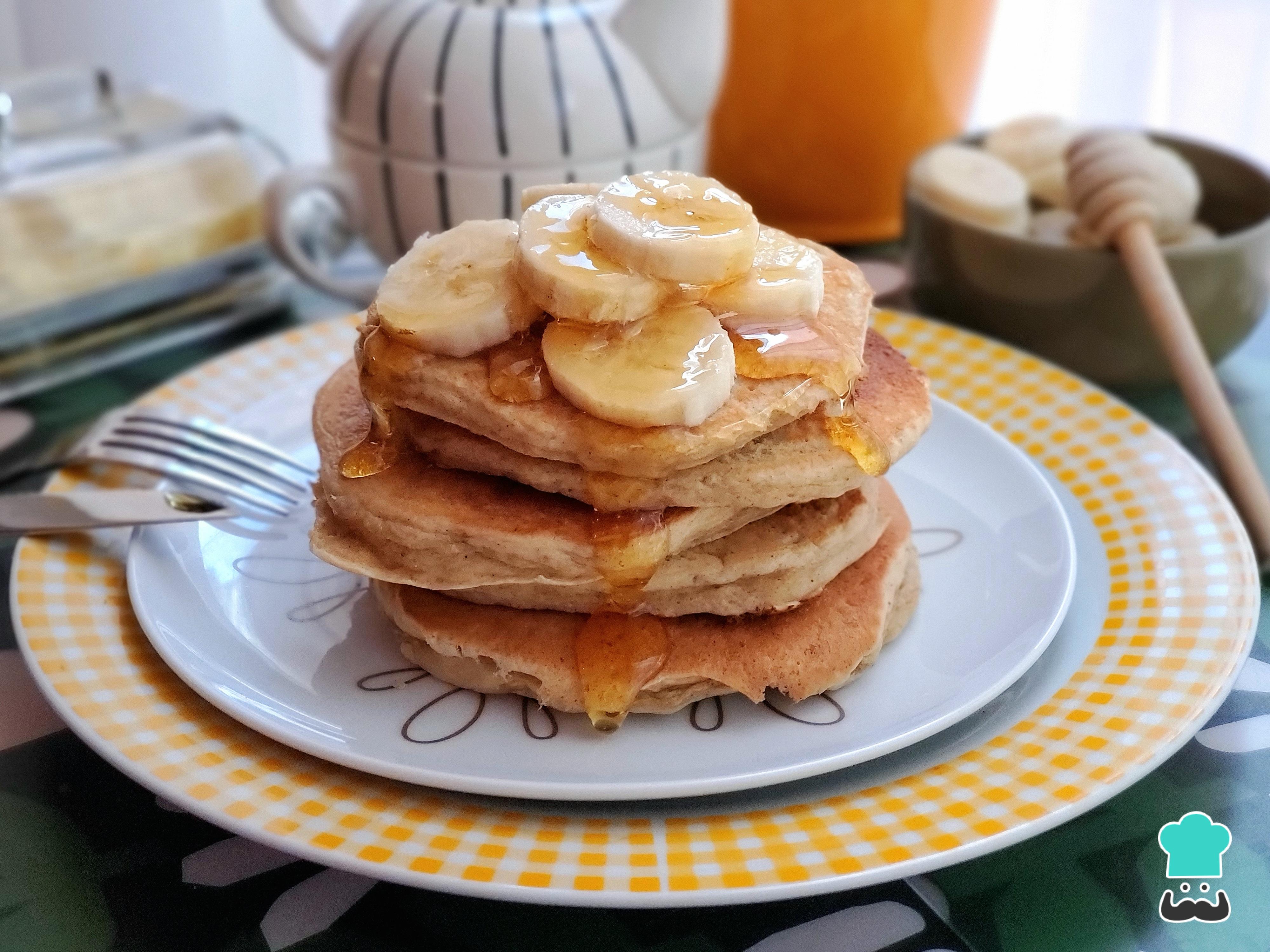 Preparar pancakes o tortitas con plátano y yogur es una manera de hacerlas más naturales, ya que se endulzan únicamente con los plátanos y con un mayor porcentaje de proteína, en especial si el yogur es griego. Además, estos ingredientes aportan una textura mucho mas esponjosa y un sabor más exquisito. No necesitarás una batidora eléctrica, batidor de globo ni de una licuadora, aunque si tienes una puedes verter en ella todos los ingredientes para obtener una masa homogénea.