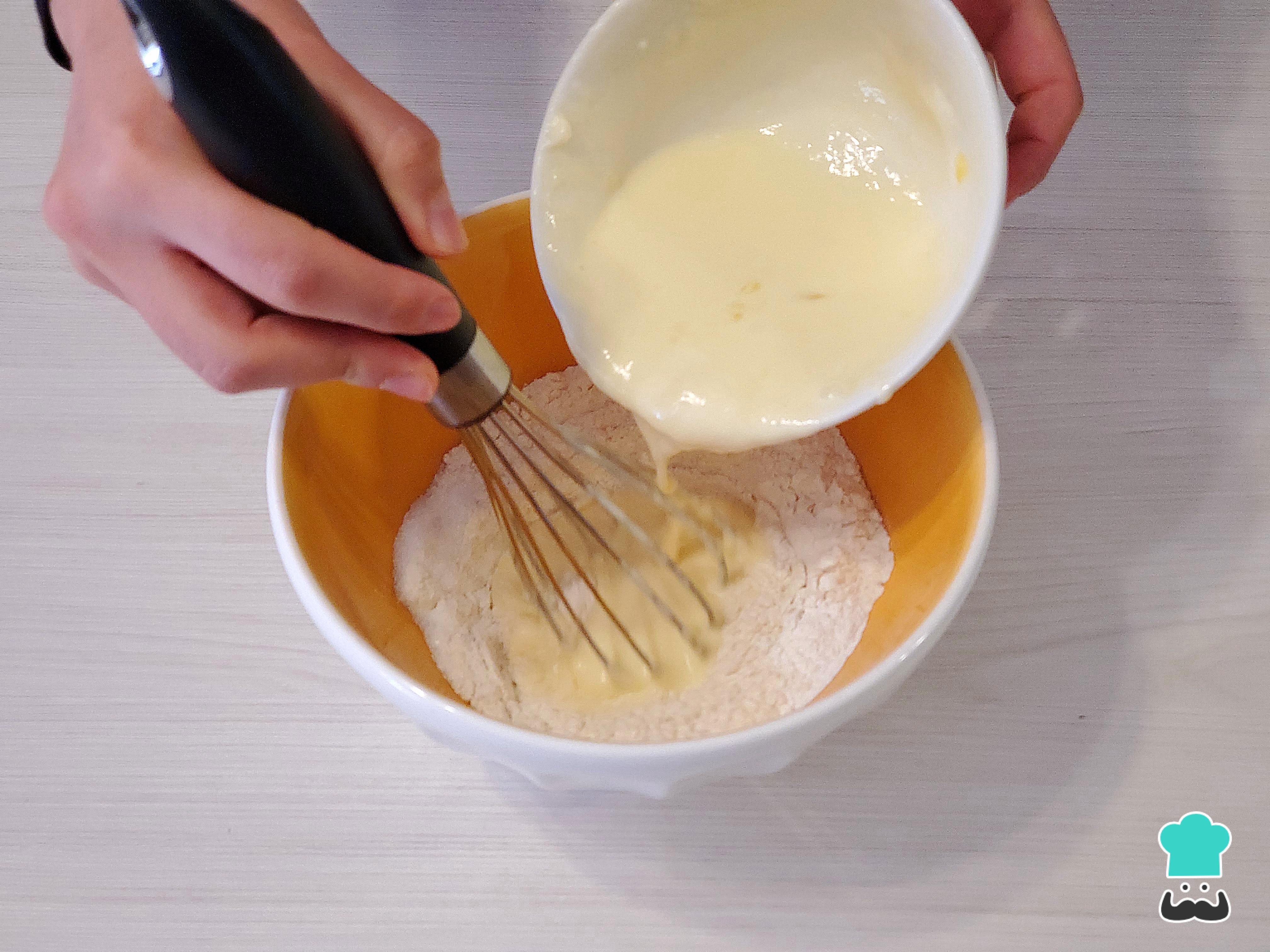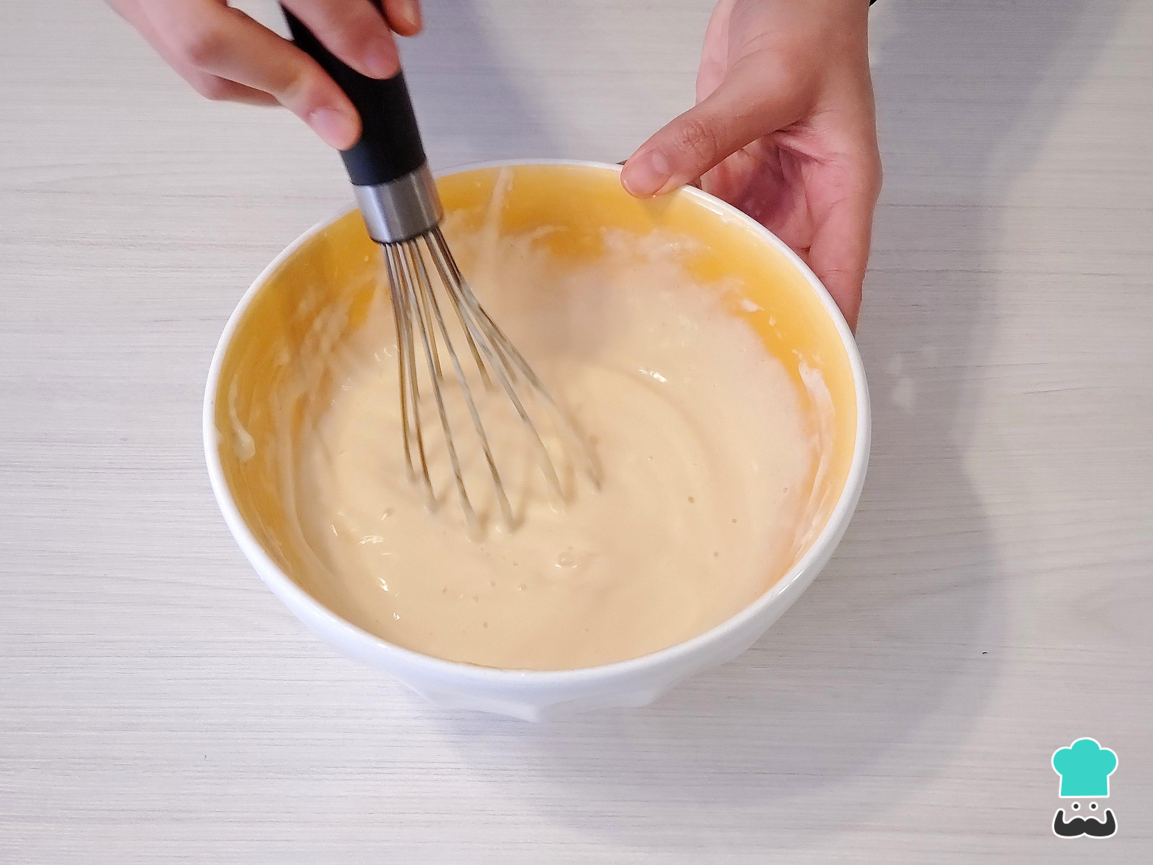 - Bate las claras a punto de nieve, resérvalas hasta que tengas una masa con el resto de los ingredientes e incorpóralas dando movimientos envolventes.