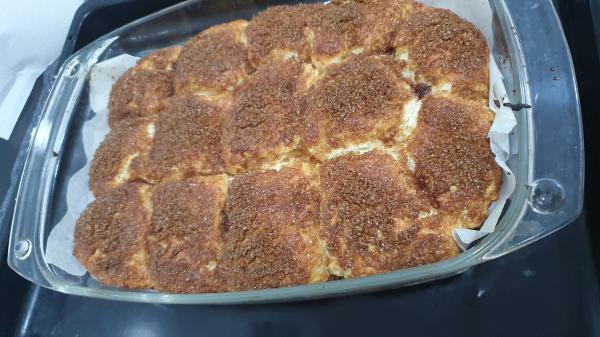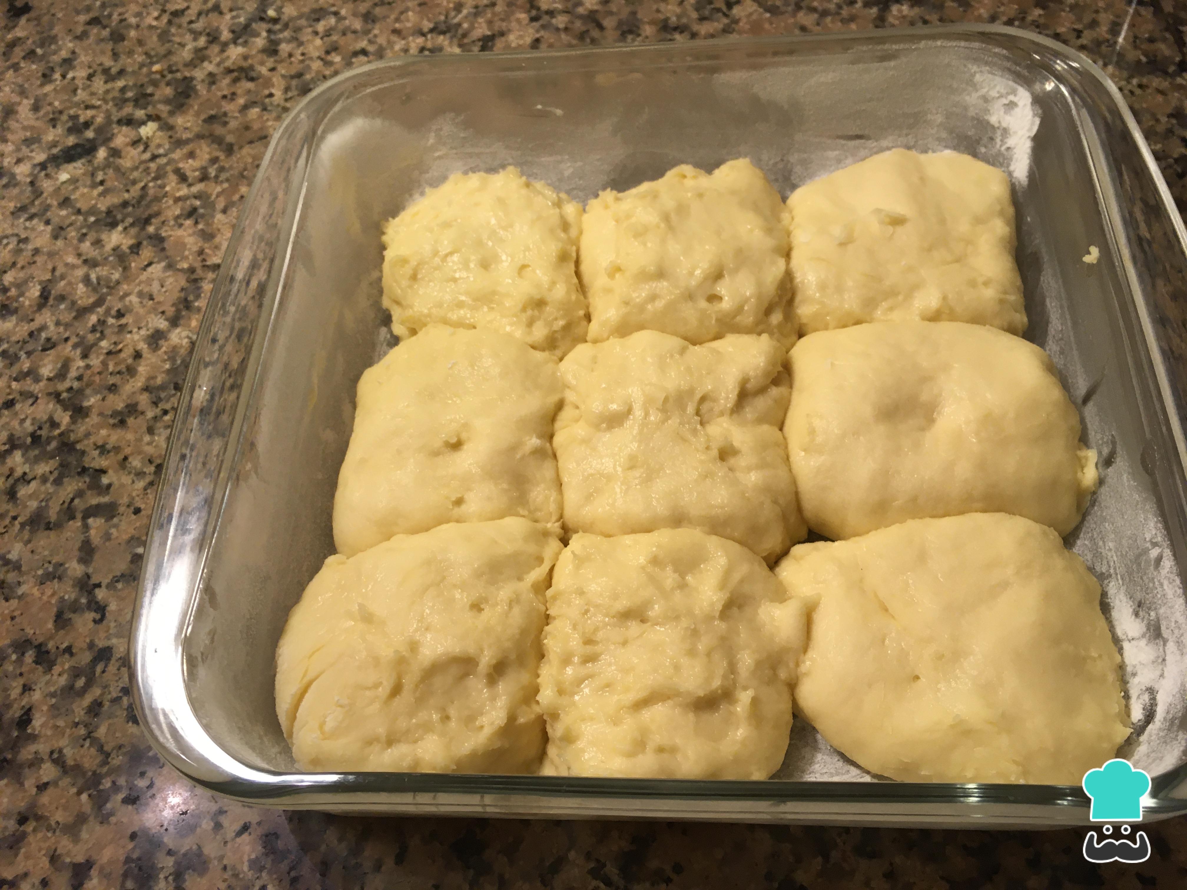 Acomoda las tortitas en una placa para horno previamente engrasada y enharinada. La idea es que estén bien juntas, pegadas entre ellas, para que leven de alto y no de ancho.