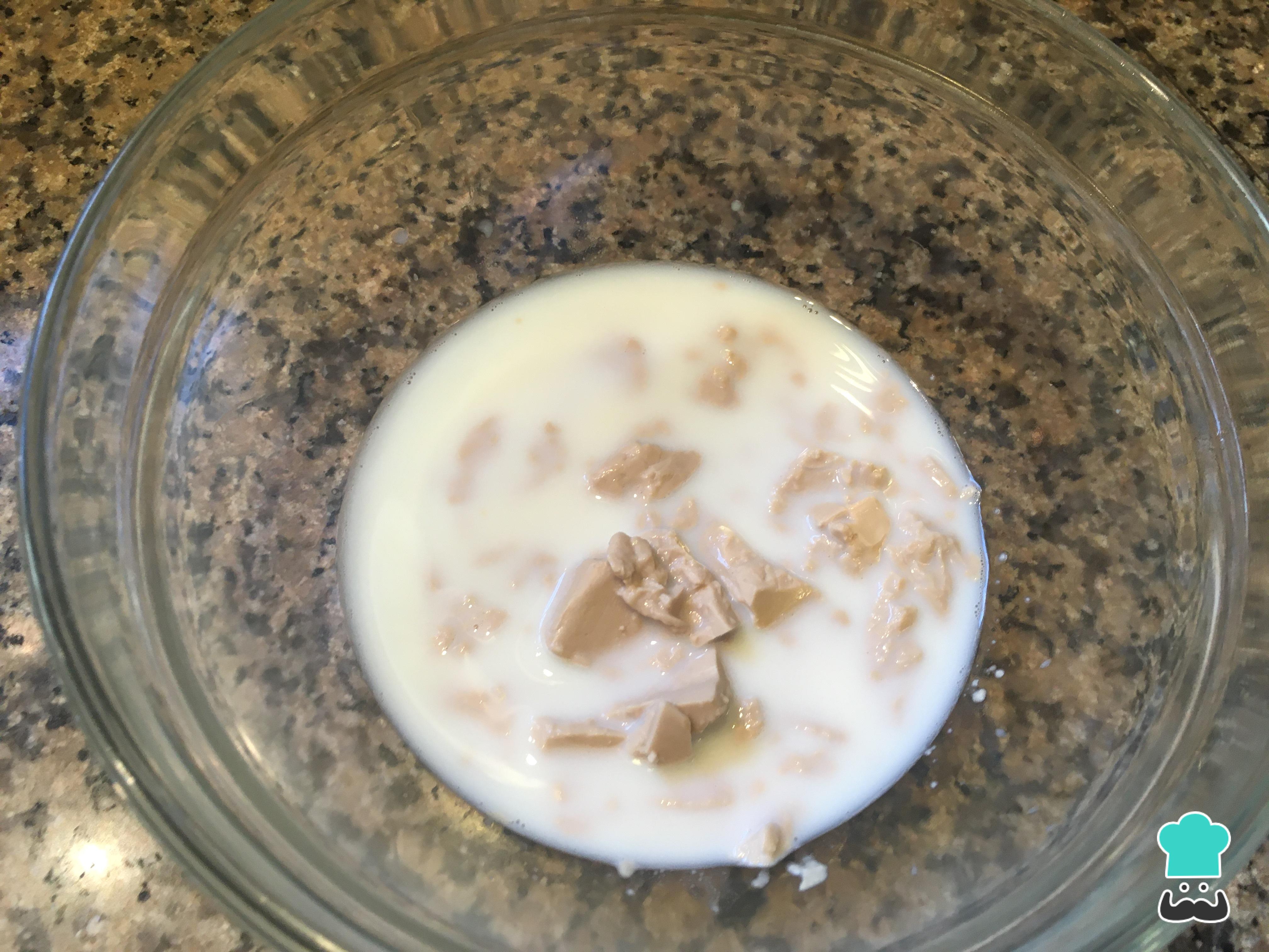Vierte un poco de leche tibia tibia en un recipiente y añade la levadura. Mezcla para que se espume.
