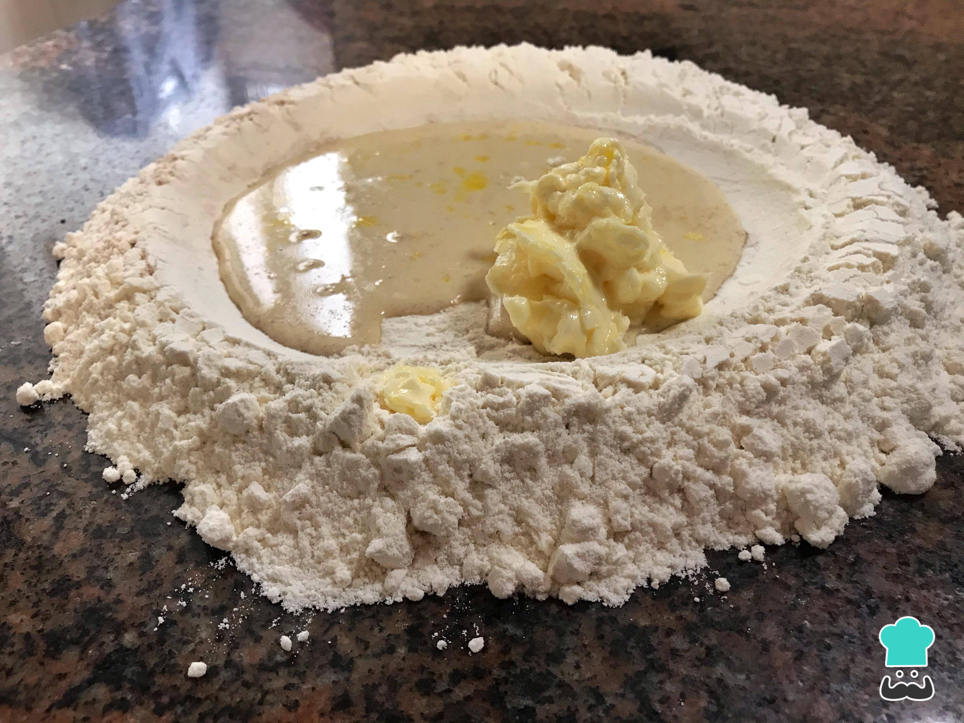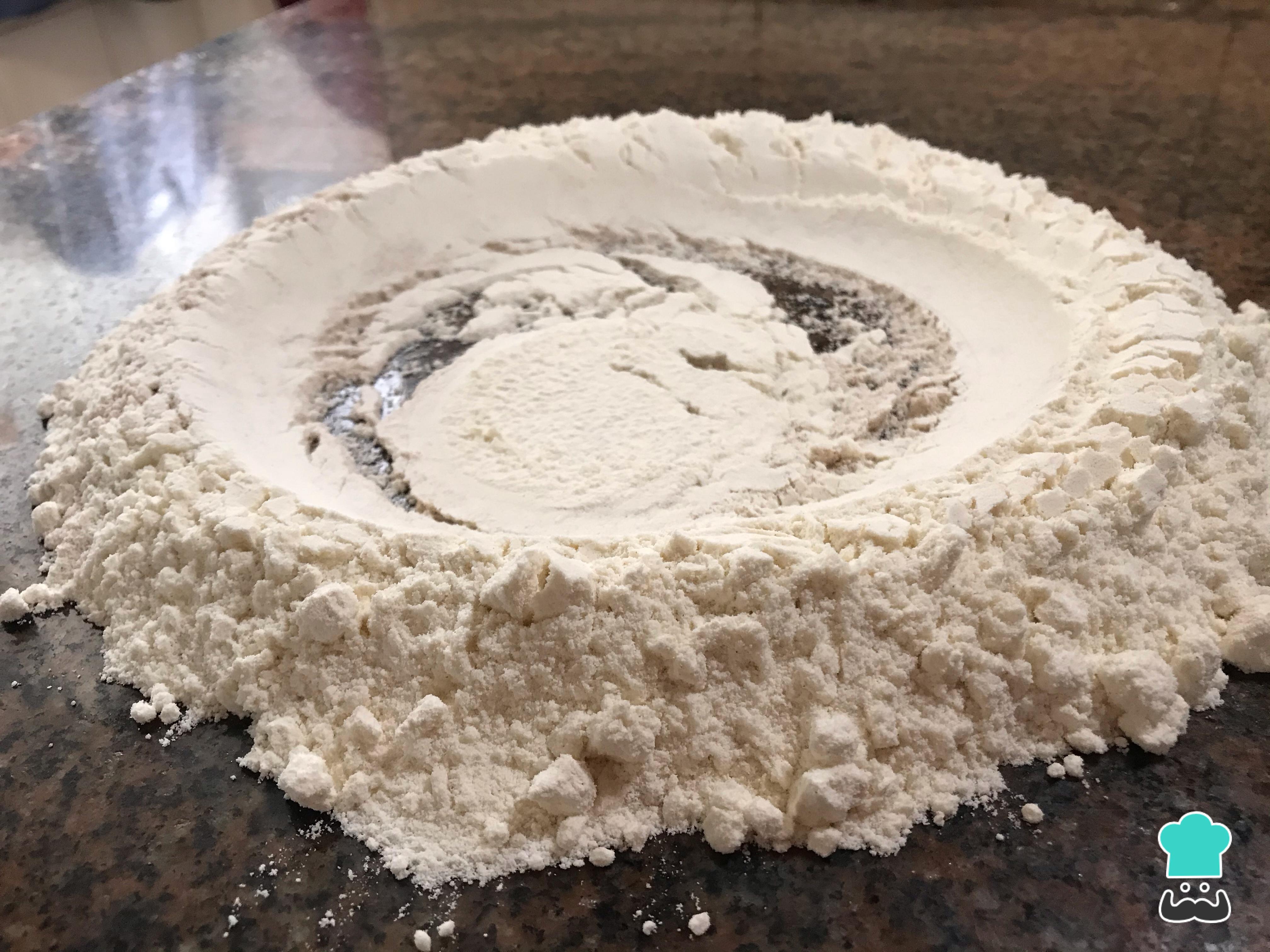 Mezcla las harinas con la sal y haz una corona como la que puedes ver en la foto.