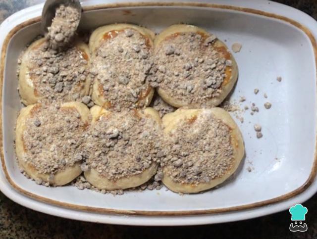 Divide el bollo en 6 de igual tamaño. Colócalos en un recipiente apto para horno, cerca unos de otros. Déjalos leudar 1 hora más o hasta que vuelvan a aumentar el volumen y los bordes de las tortas negras integrales se unan.