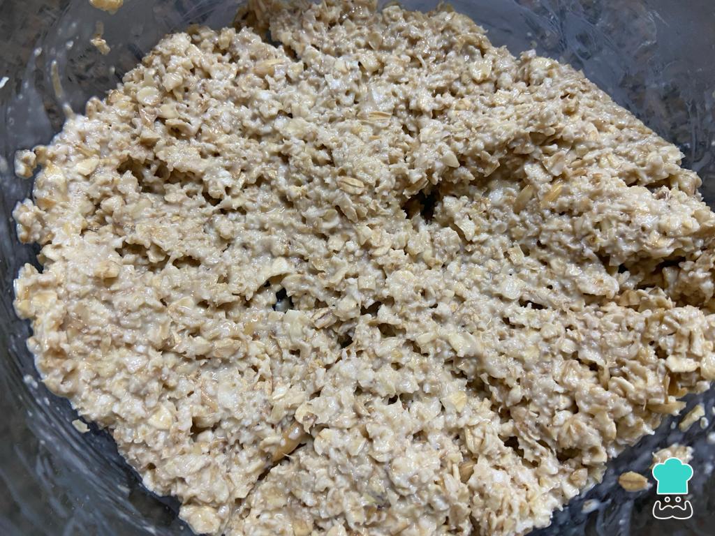 Incorpora la avena y la leche poco a poco a medida que lo necesite. Debes obtener una preparación homogénea. Deja reposar 10 minutos para que se hidrate bien la avena.