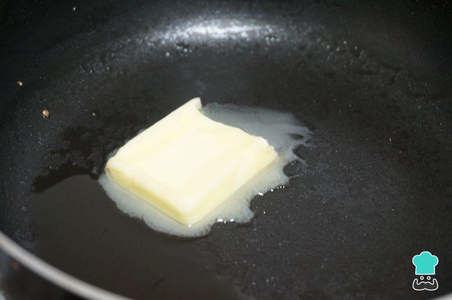 Coloca una sartén antiadherente a fuego medio con un poco de mantequilla.