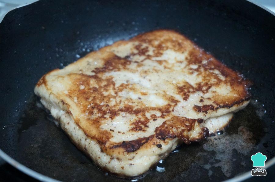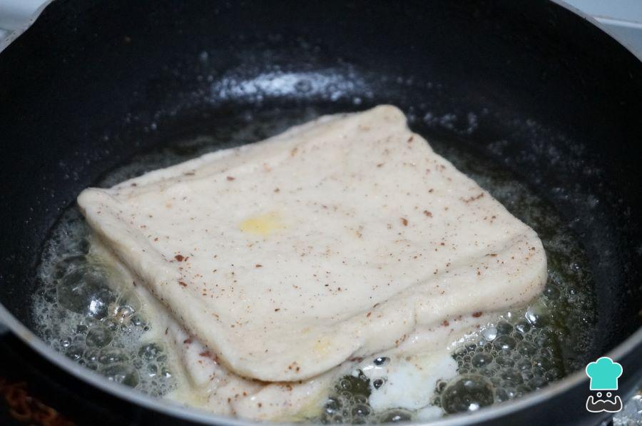 Coloca la rebanada de pan bien empapada en la sartén caliente y deja que se cocinen durante 2-3 minutos por cada lado. Deben quedar doraditas, pero con cuidado no se quemen.