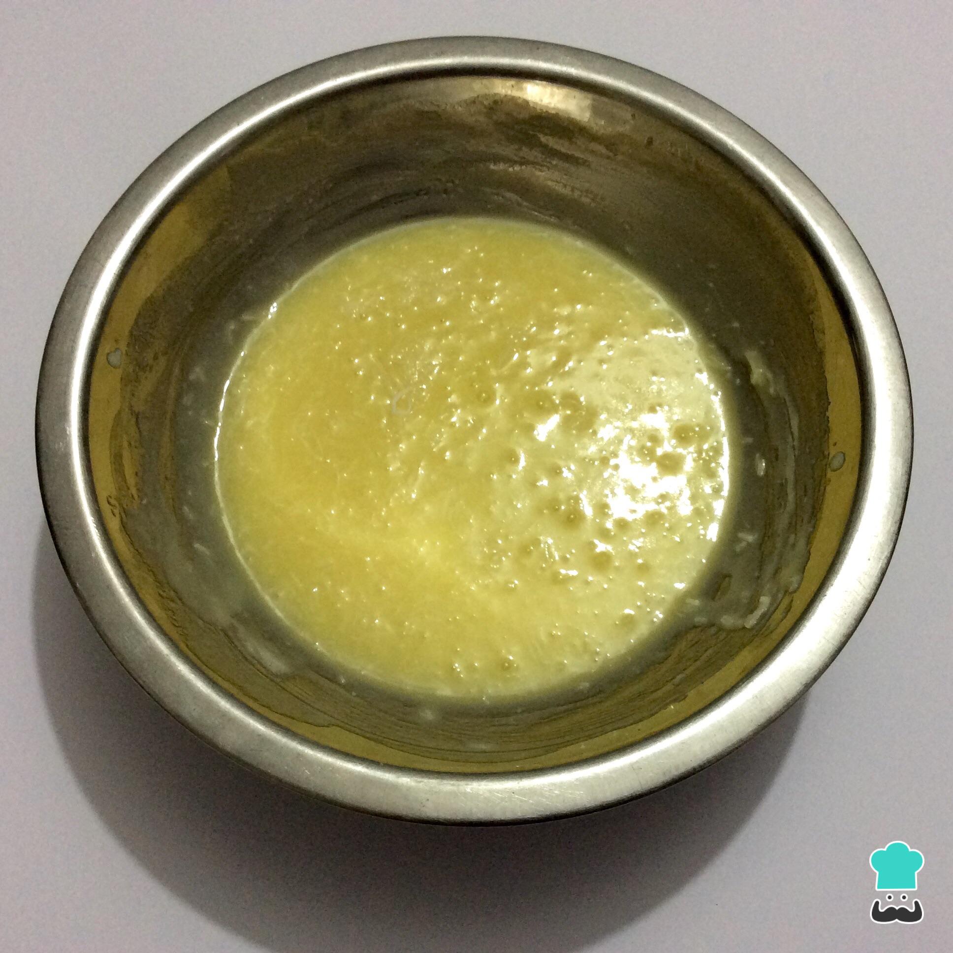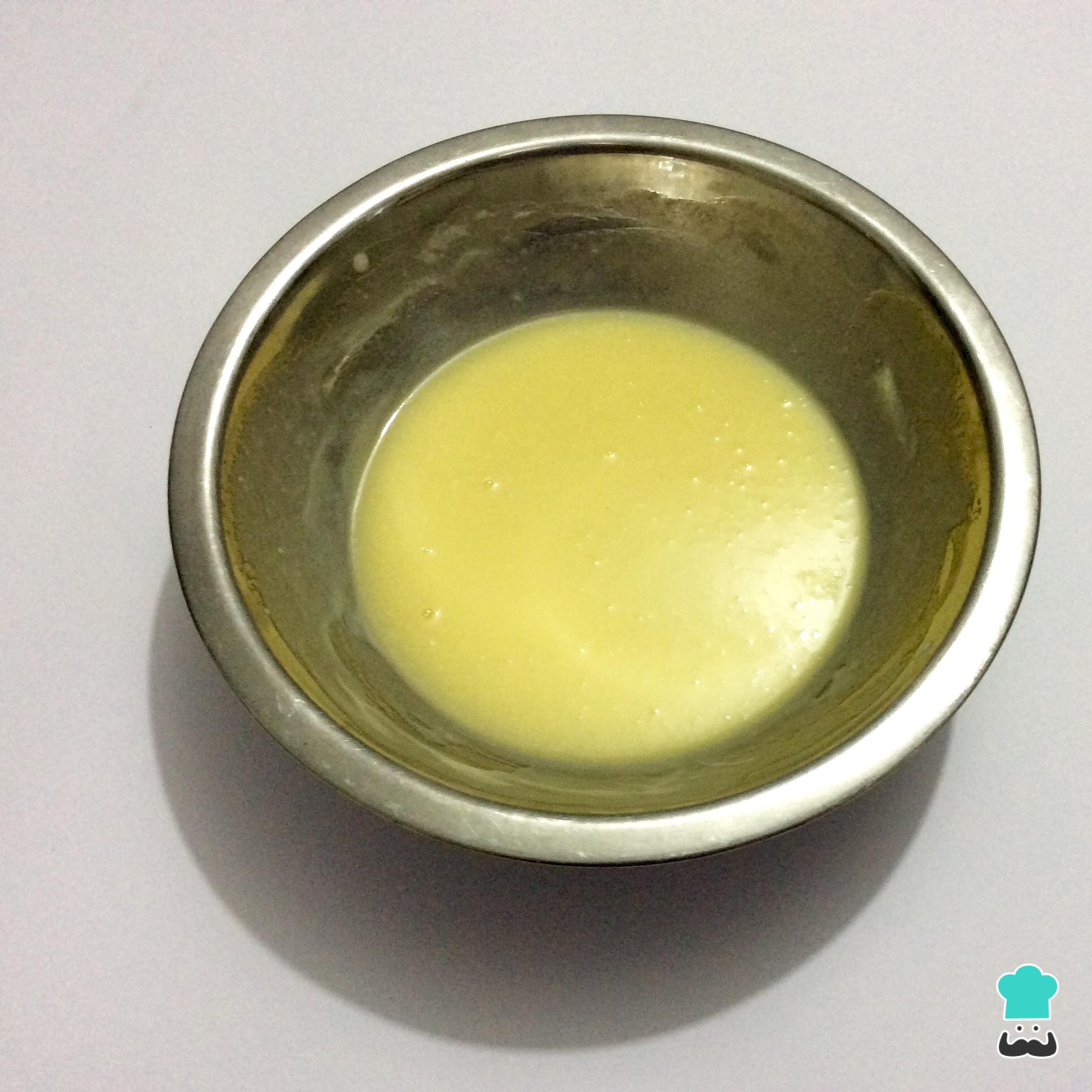 Agrega la crema de leche al chocolate blanco picado y mezcla enérgicamente hasta que el chocolate se derrita por completo. Si no se derrite puedes llevarlo al microondas por 30 segundos.