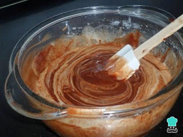 Ahora ve vaciando el chocolate en el recipiente donde tengas el polvo de galletas. Mezcla hasta conseguir una masa maleable y añade un poco más de galleta o chocolate a medida que sea necesario.
