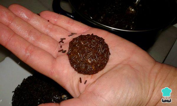 Forma las trufas sin mantequilla con las manos y baña cada bolita en las virutas o fideos de chocolate o de colores que prefieras. Luego reserva en la nevera un par de horas para que terminen de solidificarse y listo.
