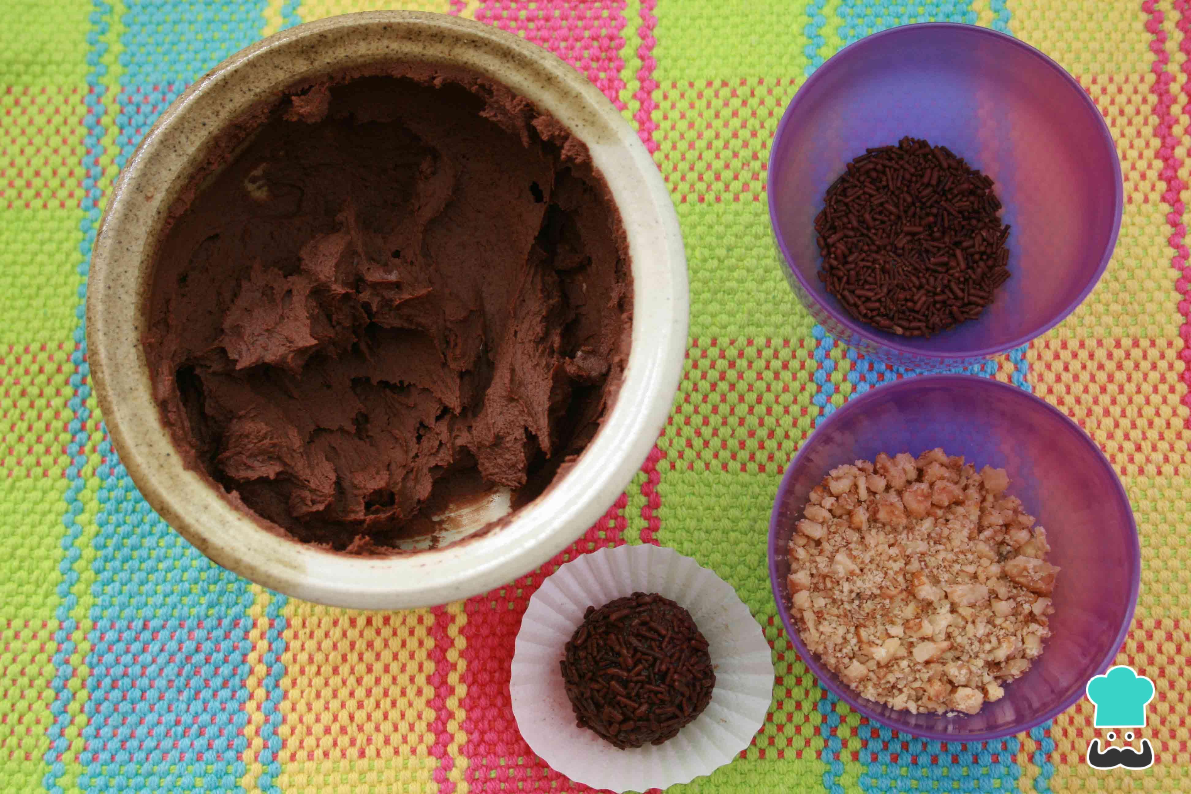 Crea unas bolas del tamaño de un bocado, es decir que puedas comerla de una vez y sin morder. Pasa la trufas de chocolate veganas por la cubierta que prefieras y colócalas en el capacillo. y... ¡mmm!