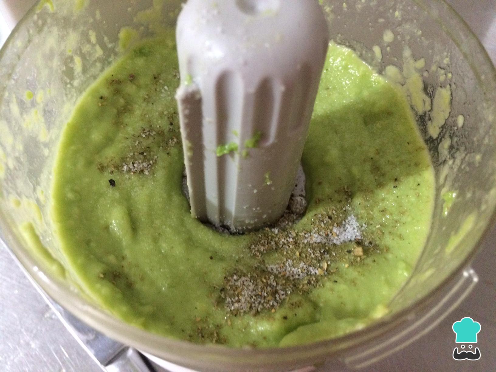 Es momento de agregar un gran chorro de aceite de oliva y un poco de agua para seguir con la receta de aguacate. Procesa nuevamente hasta obtener una consistencia homogénea y suave.