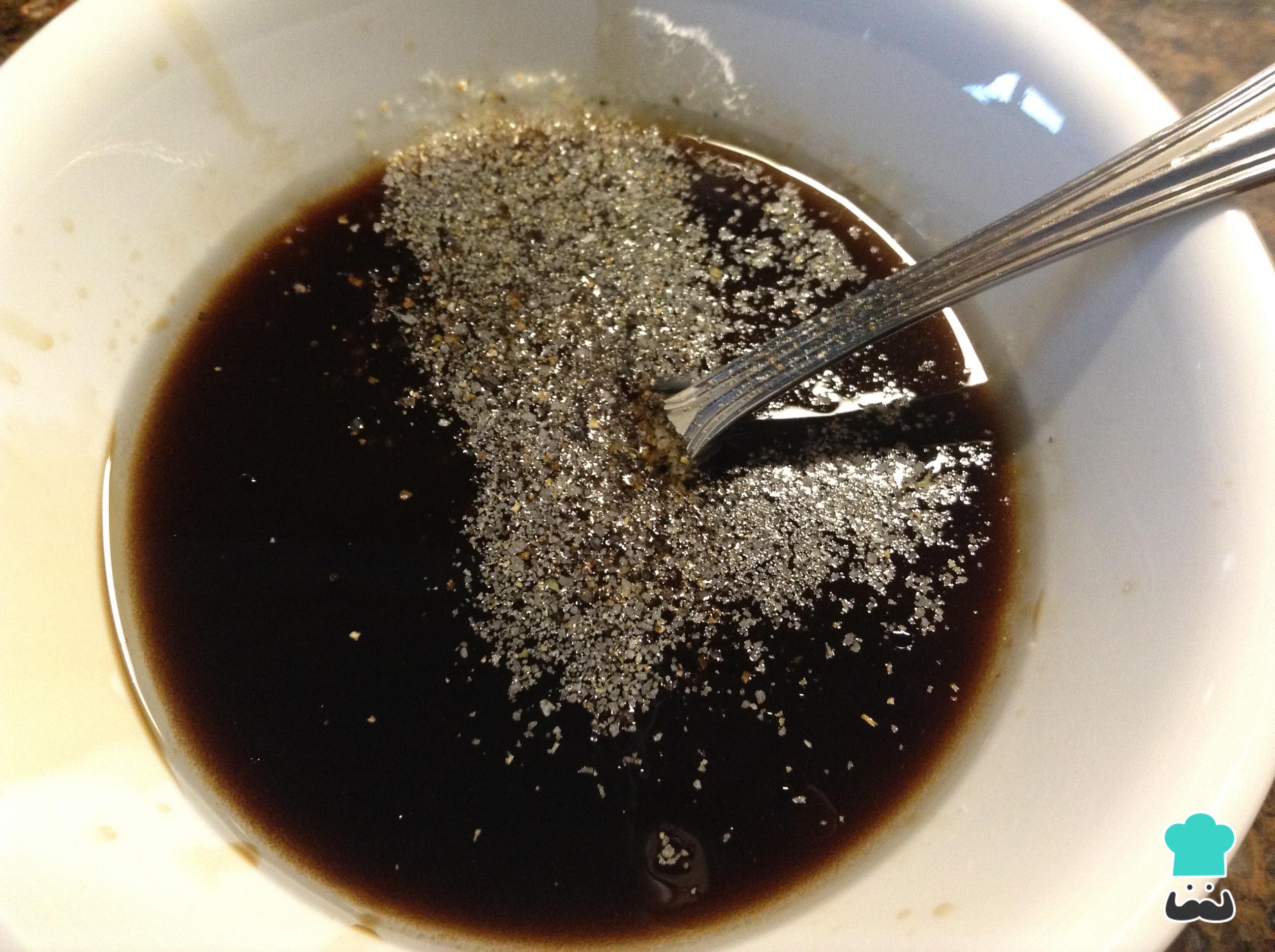 En un bowl adicionar el vinagre balsamico.Ir adicionando en forma de hilo el aceite de girasol y con la ayuda de un batidor de mano o un tenedor mezclar hasta que se integren bien estos dos ingredientes.