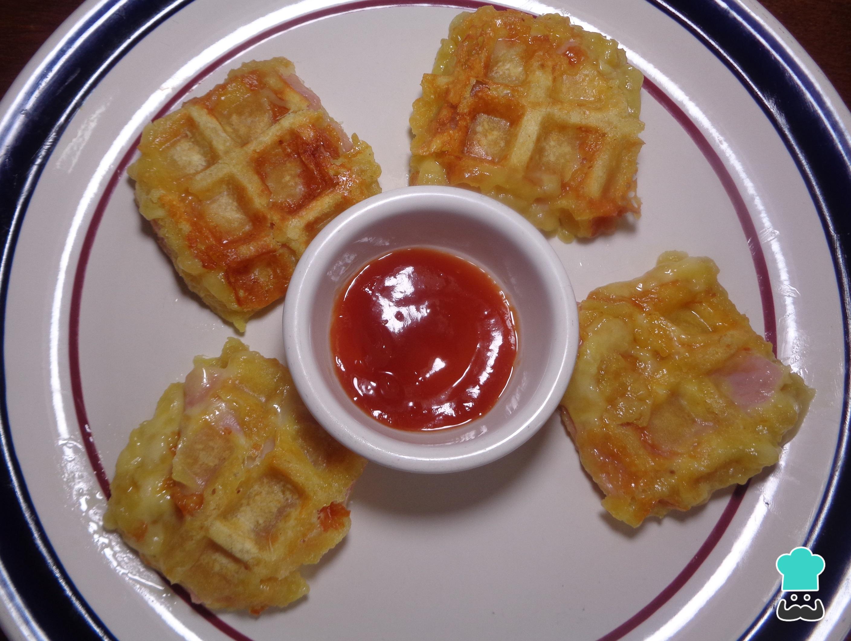 Puedes acompañar los gofres salados con un poco de salsa catsup, quedan deliciosos.
