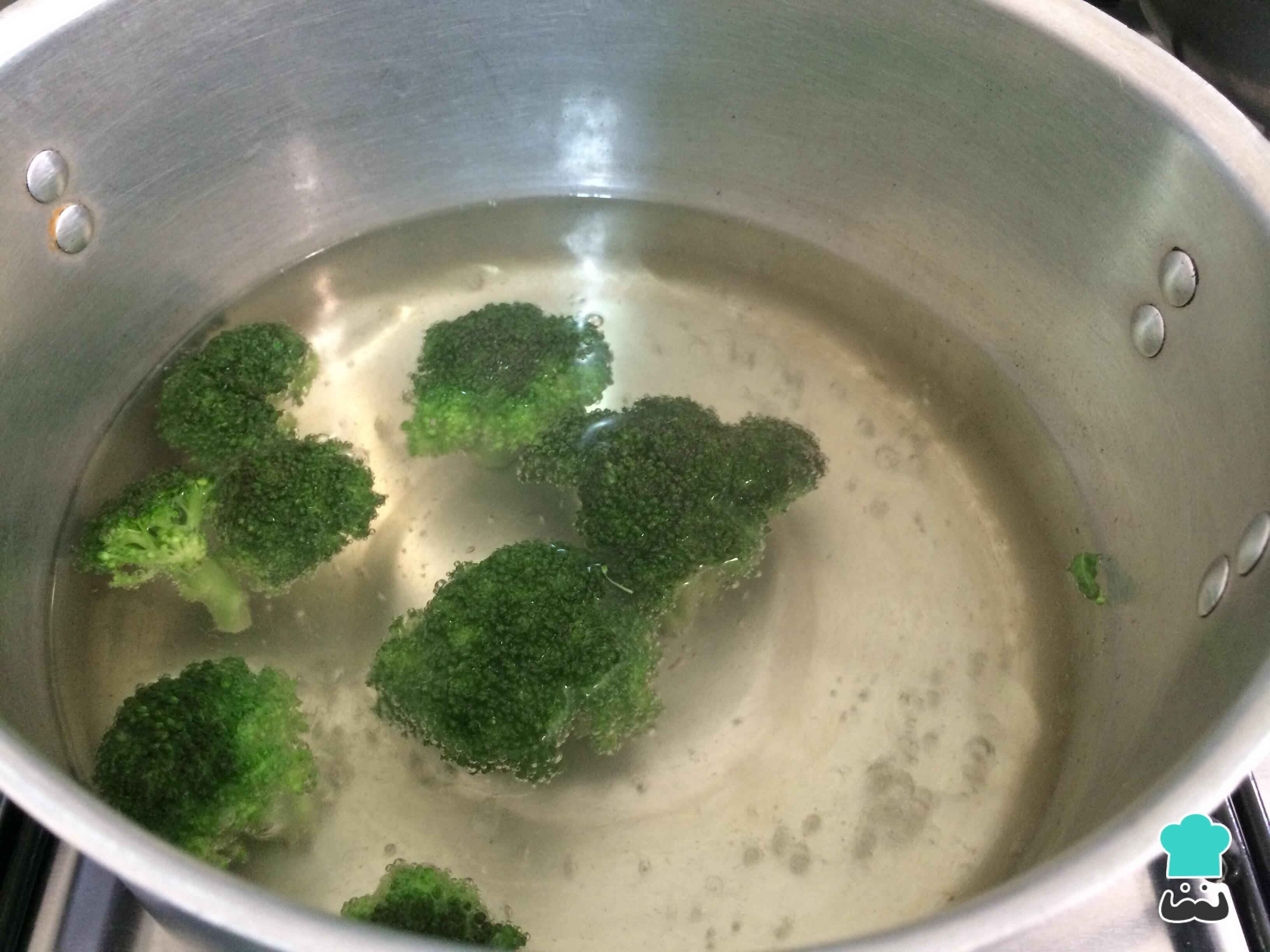 En una olla con agua hirviendo y una pizca de sal, cocinar el brócoli durante 10 minutos, una vez este listo cortar en rodajas y reservar.