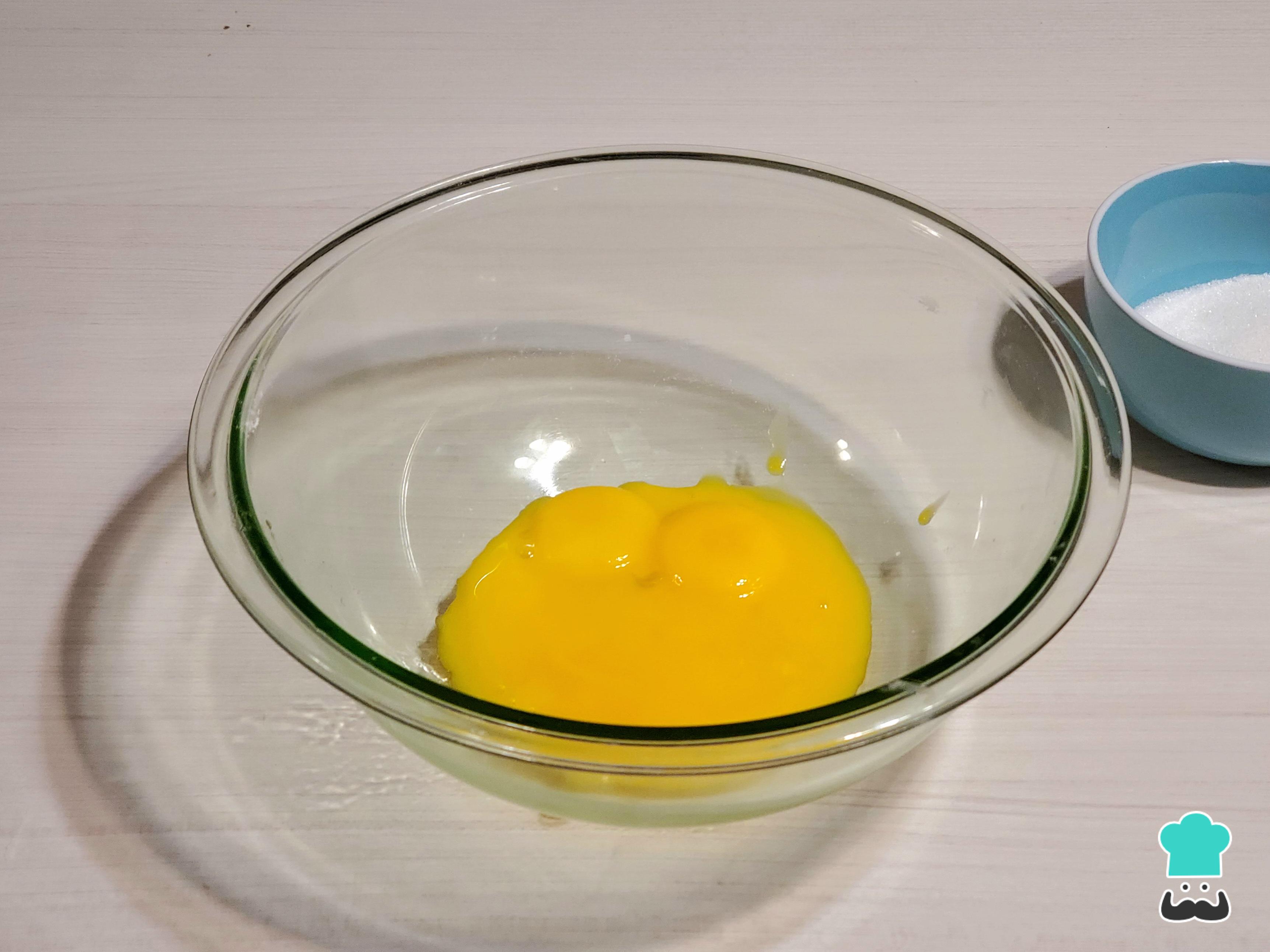 Empieza separando las claras de las yemas. Coloca las yemas en el bowl de tu preferencia, idealmente de Pyrex o metal, ya que verteremos un almíbar que supera los 100 °C. Remuévelas bien y cuélalas para retirar cualquier residuo.