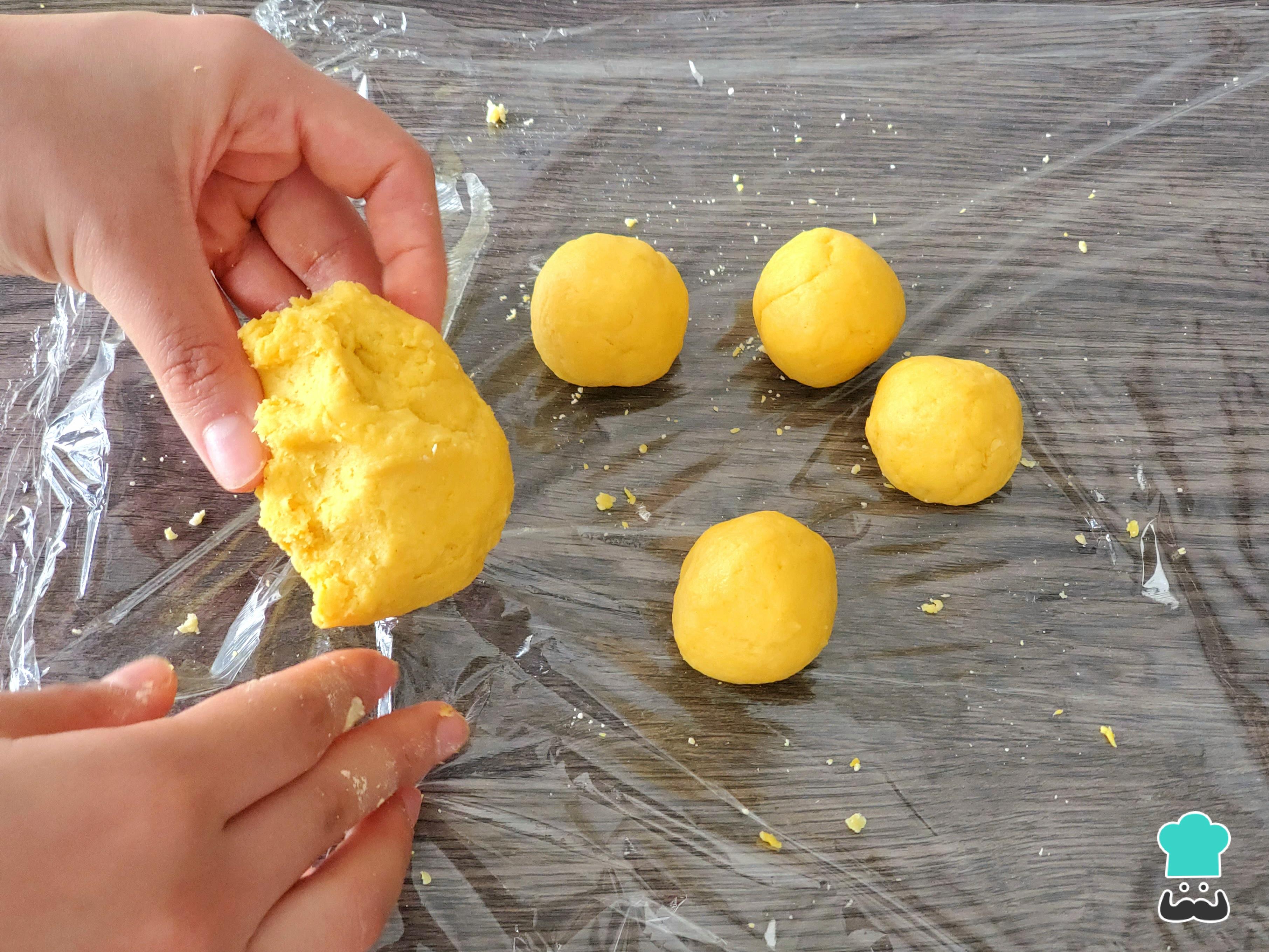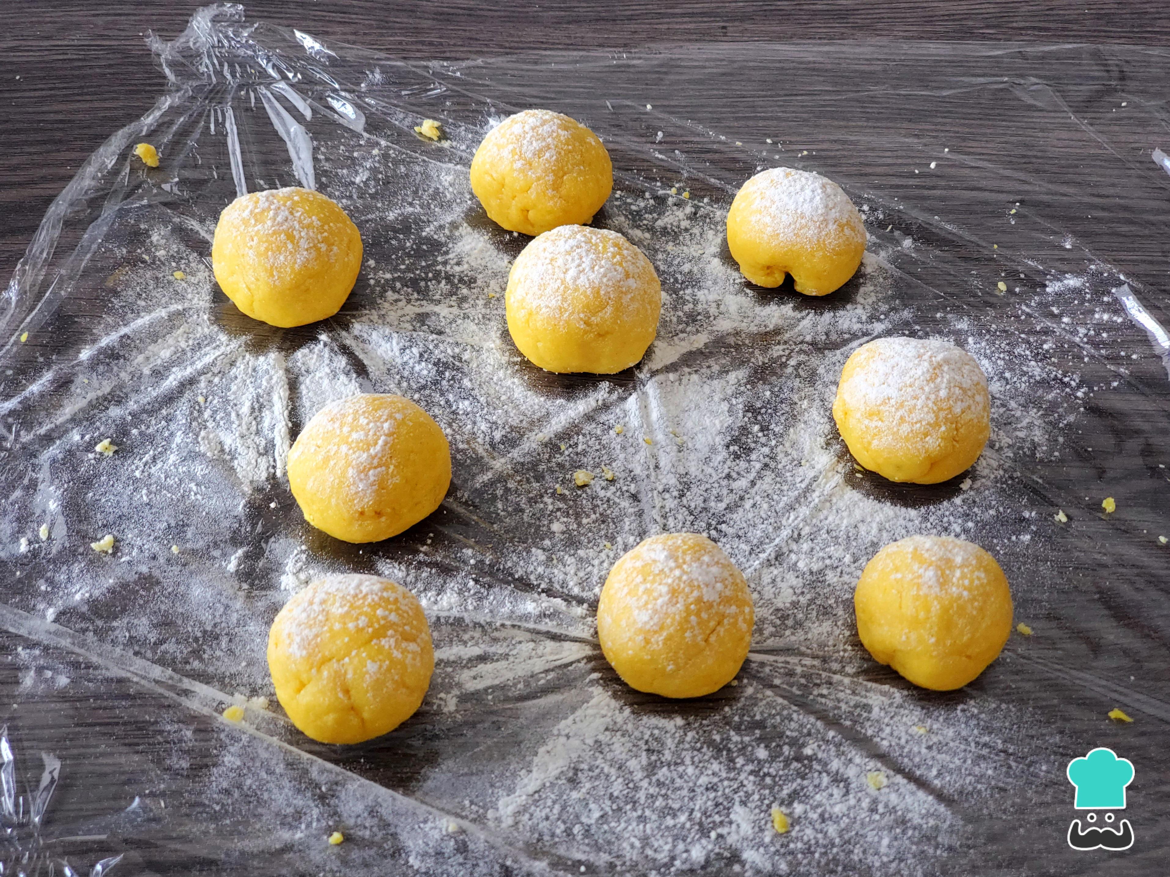 Divide la masa en pequeñas porciones, boléalas y pásalas por más azúcar impalpable o, si prefieres una corteza más crujiente, por azúcar blanca granulada.