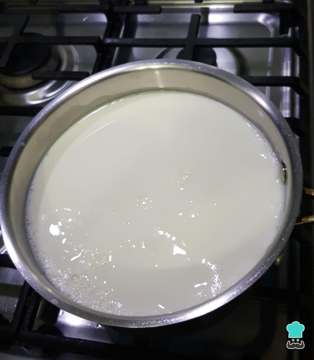 Vamos a empezar esta receta de yogur casero con fresas calentando la leche en una olla sin dejar hervir. Luego, dejamos que baje la temperatura hasta que tu dedo meñique soporte el calor, echamos el yogur natural y batimos con batidor manual lentamente por 3 minutos.