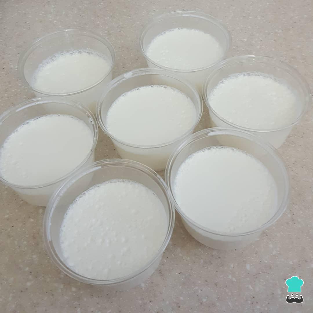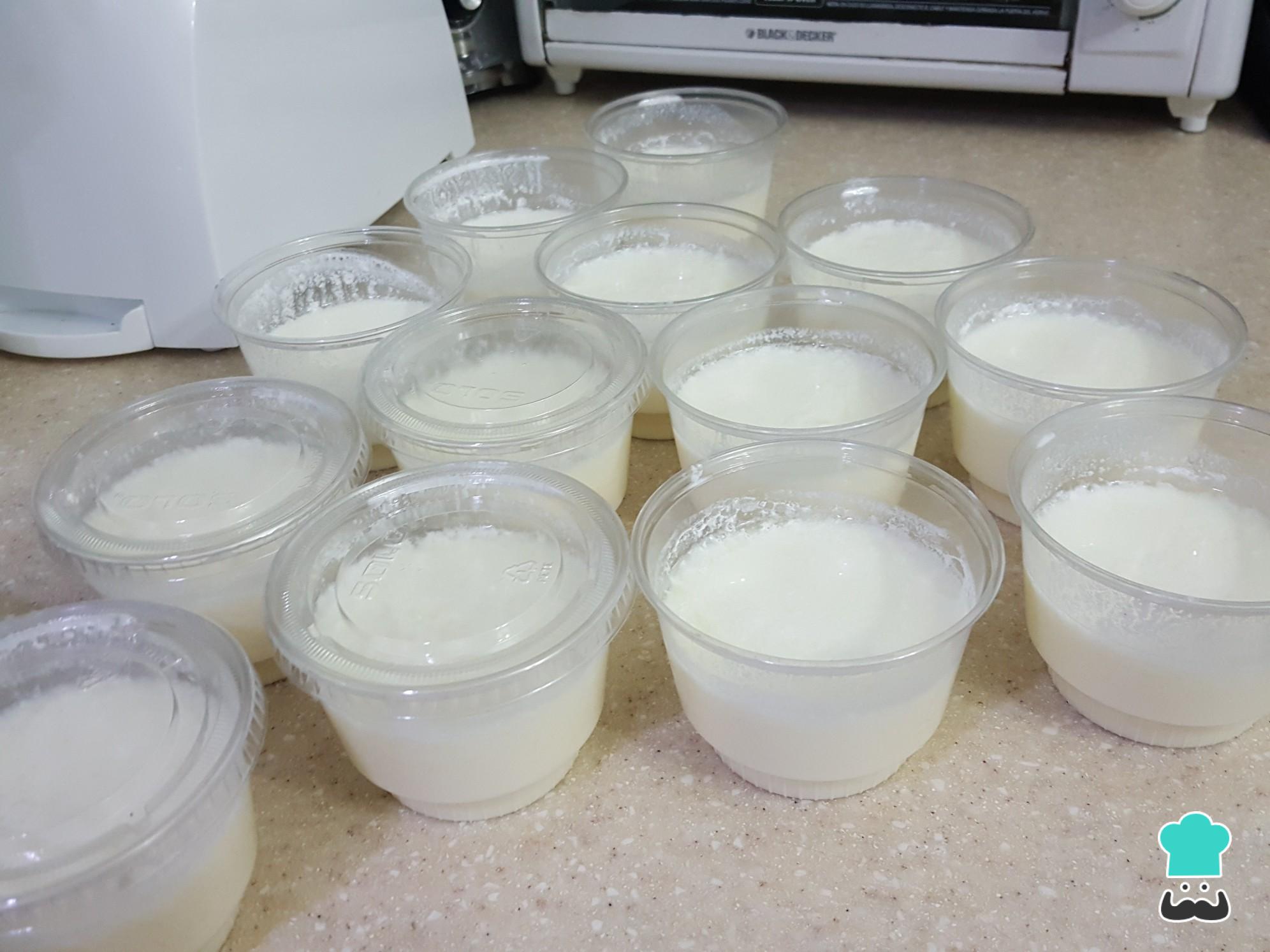 Agregamos el edulcorante natural, stevia o splenda, 1 sobre por cada yogur. De un litro de leche salen 7 unidades con el vasito que utilizo. Luego, envasamos y llevamos a la yogurtera o en un envase tapado, metemos en bolsa plástica, cubrimos con una toalla de cocina y dejamos en un lugar ambiente con temperatura entre 28 a 30 grados centígrados por lapso de mínimo 12 horas.