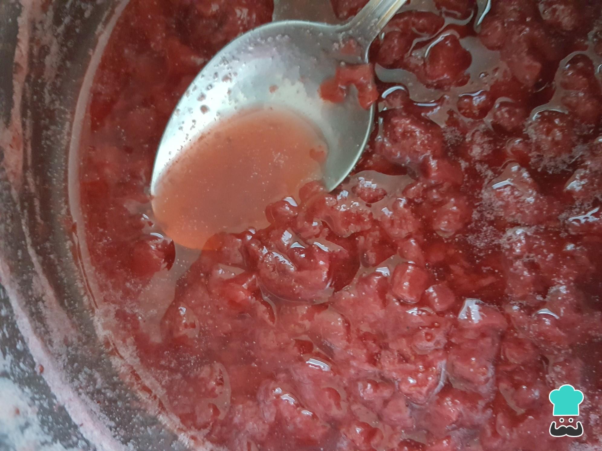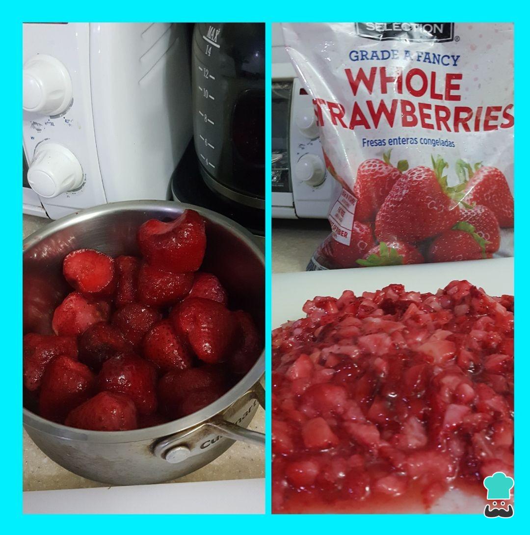 Luego, ponemos las fresas a fuego medio, agregarle 5 sobrecitos de edulcorante y dejamos reducir.