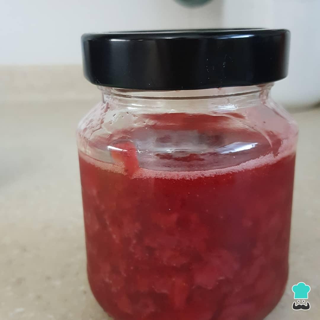 Dejamos enfriar el sirope de fresas y luego envasamos. Es recomendable que guardes el sirope de fresas en un recipiente de vidrio.