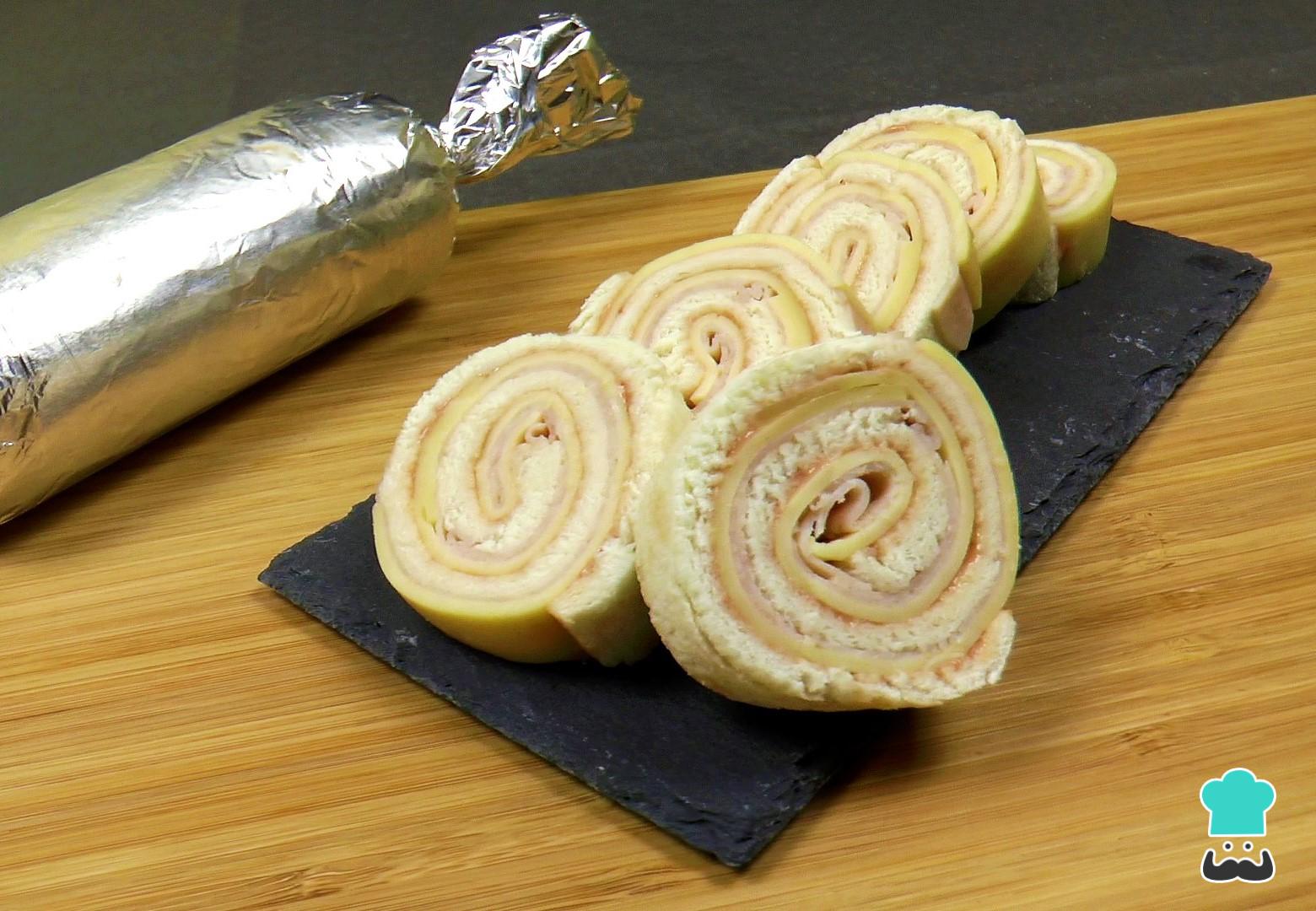 Deja reposar en la nevera unas 3 horas para que se compacte bien y listo. Saca de la nevera y corta los rollitos del grosor que prefieras, retira el papel de aluminio y ¡buen provecho!. Los rollitos de pan de molde salados no te durarán mucho en la mesa.